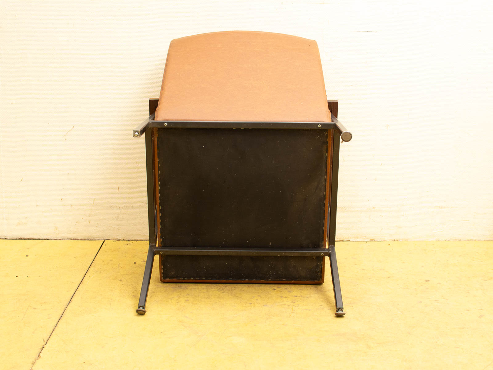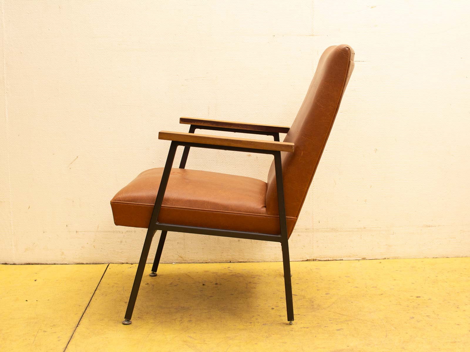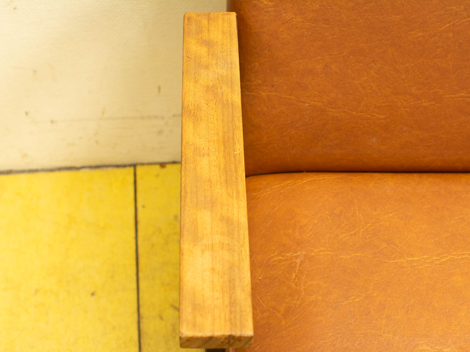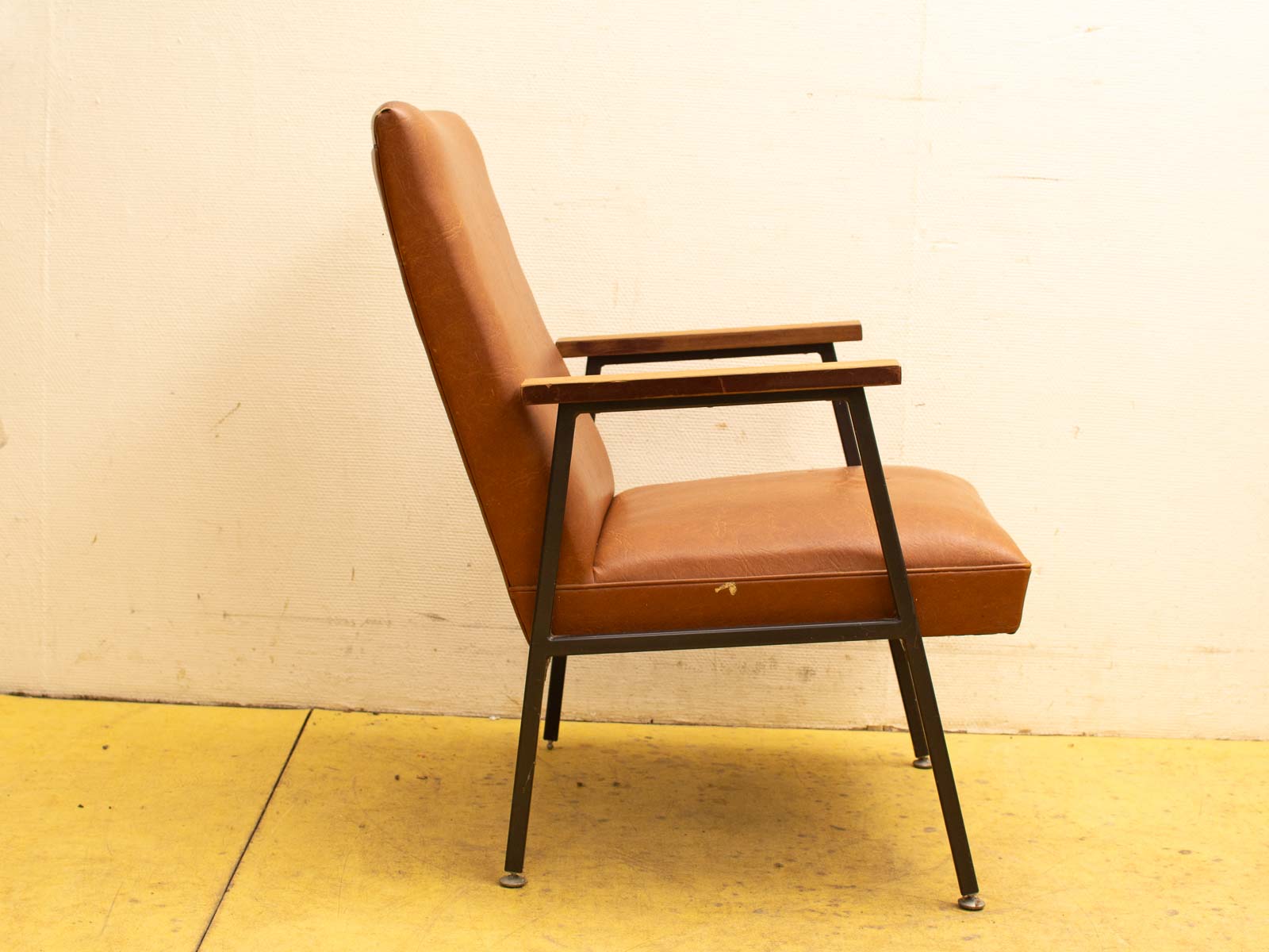 de stoel heeft aan de zitvlak deukjes en aan de bovenkant laat de leer een stukje los de stoel heeft een paar gebruikersporen