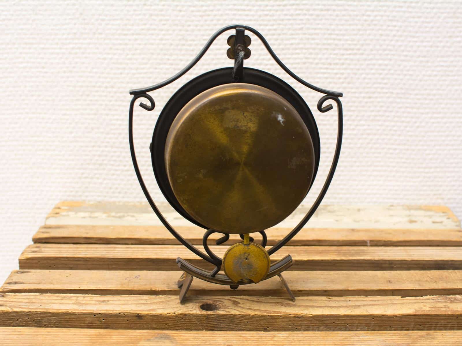 Een leuk tafelklokje van messing. Helaas ontbreekt de sleutel en is deze niet lopend daardoor.