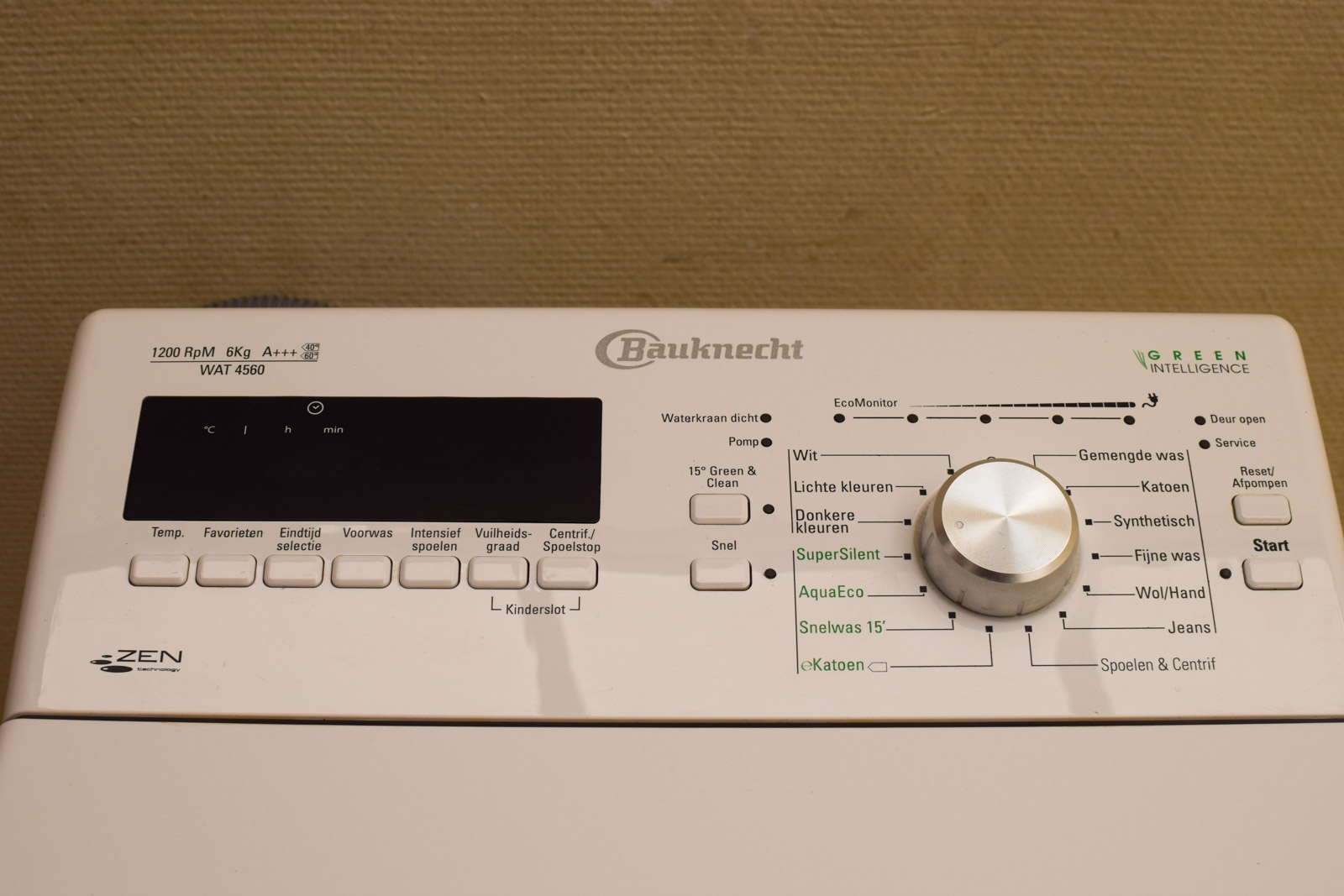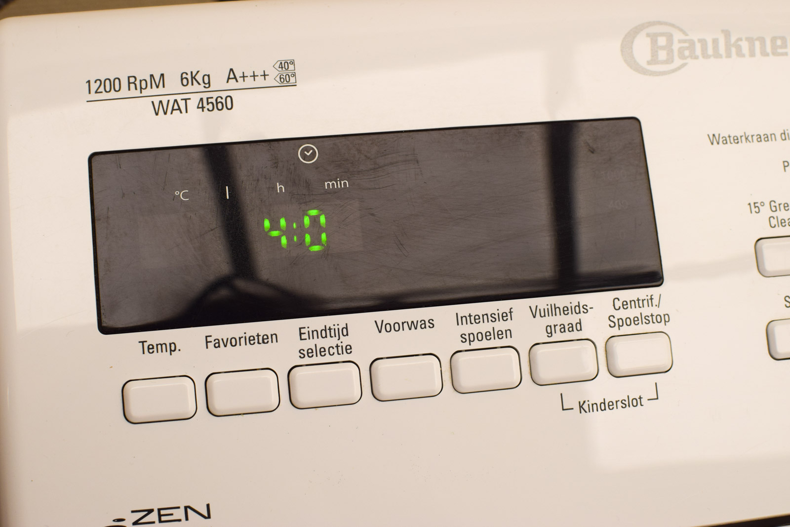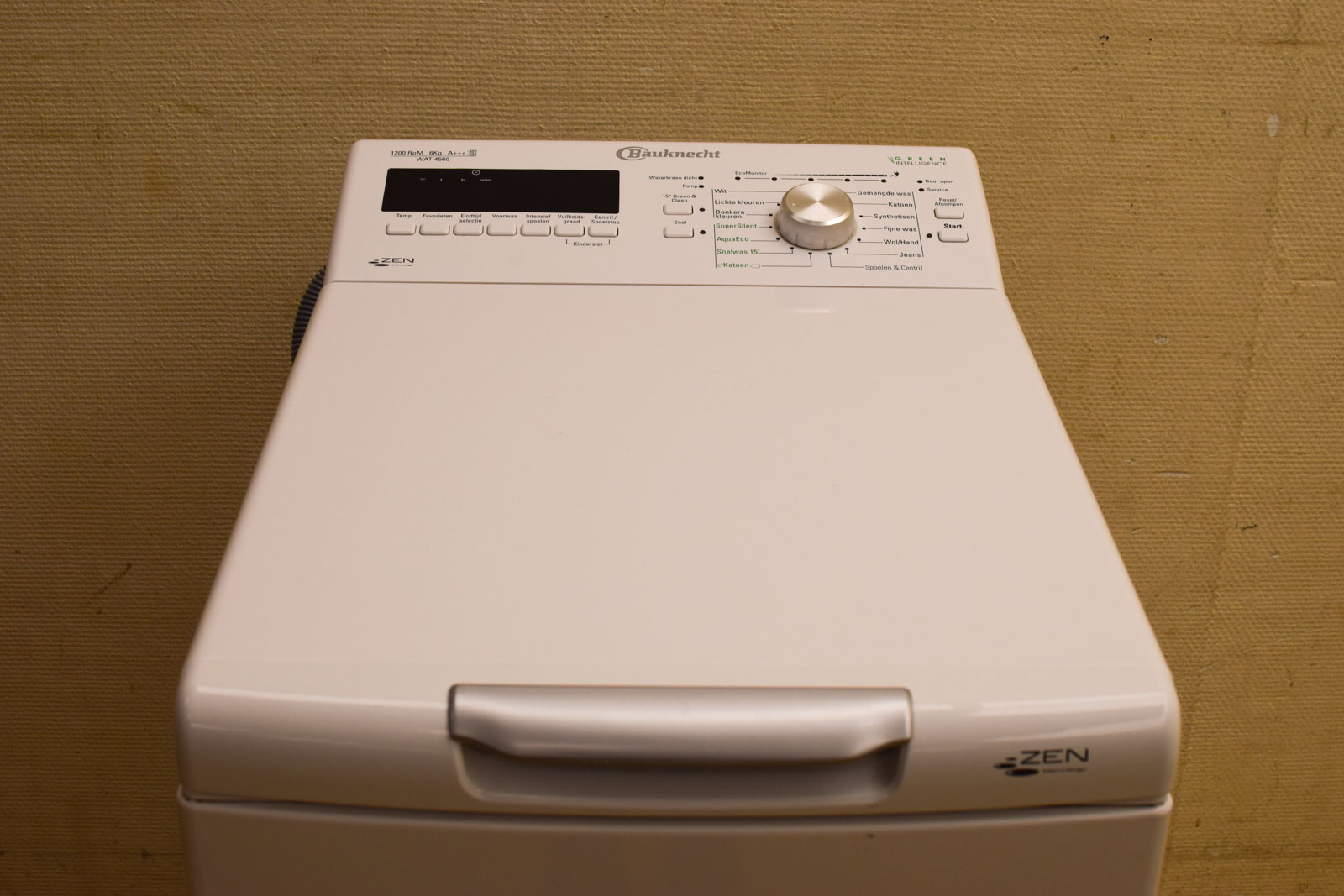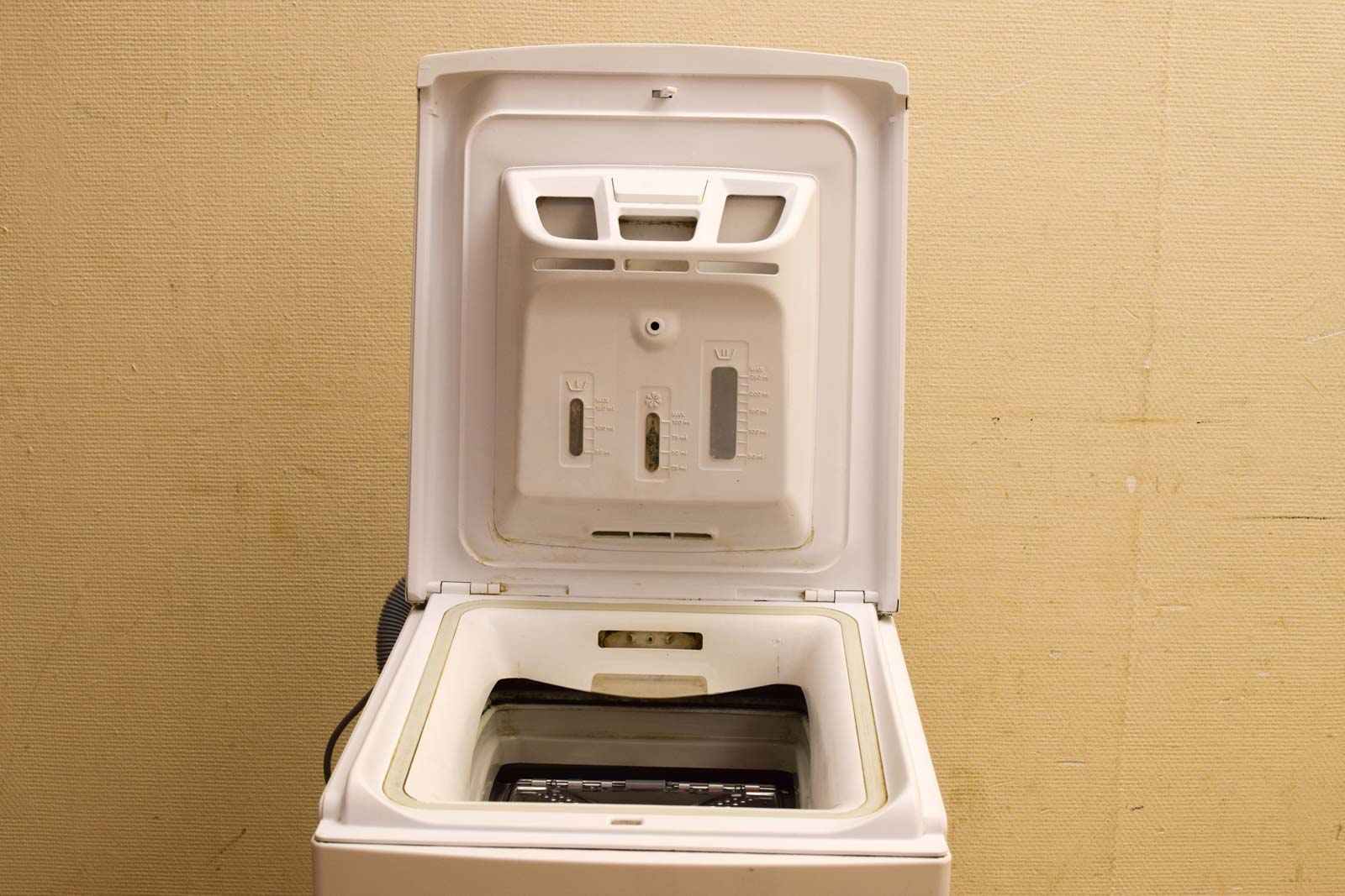 de machine heeft aan de binnenkant een poetsbeurt nodig hij is getest en gaat aan