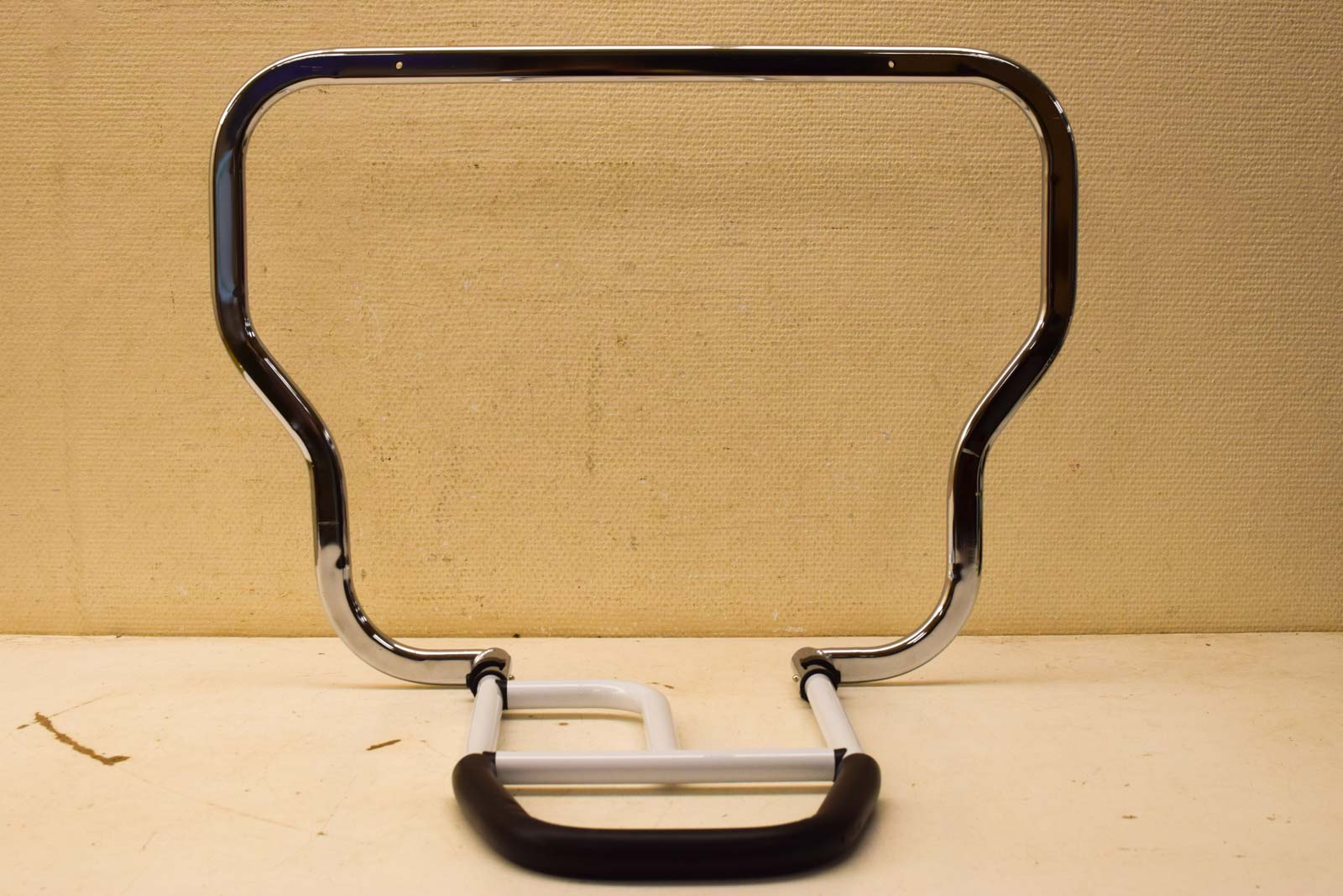 de bedbeugel kan niet in hoogte versteld worden ziet er nog goed uit de breedste gedeelte breed 69 cm hoog 52 cm