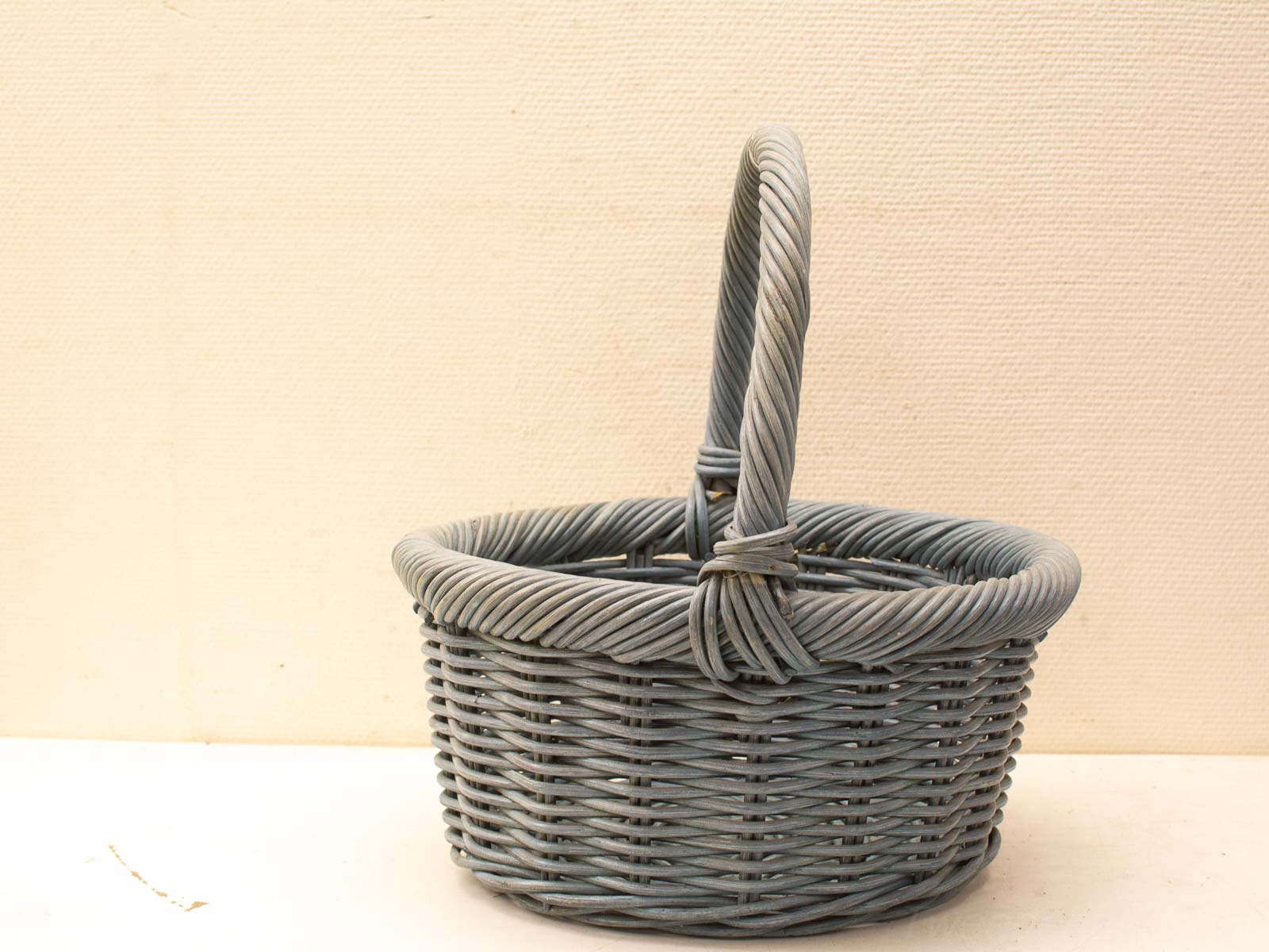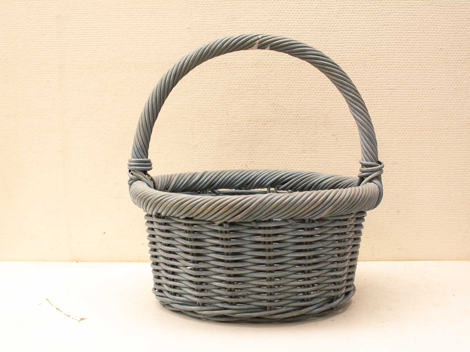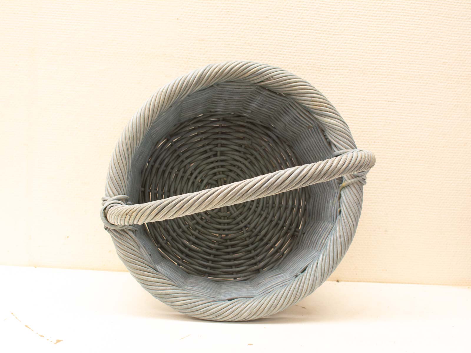 op een paar lichte gebruiksporen na is de mand nog goed hoogte gemeten zonder hendel 21 cm diameter bovenkant gemeten met rand 42 cm