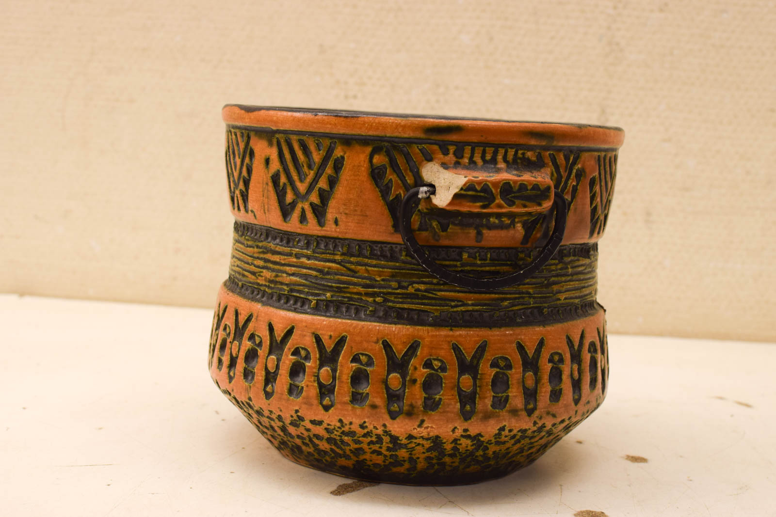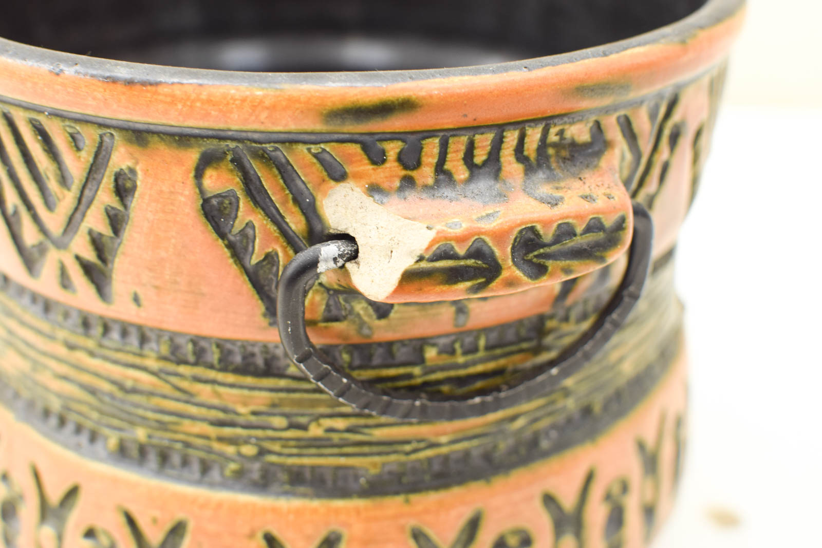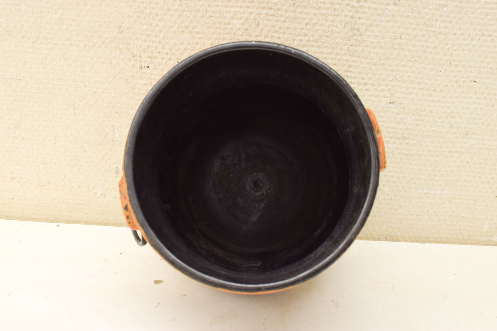 diameter bovenkant opening 18 cm hoog 15,5 cm heeft aanslag aan de binnenkant en mist een stukje bij het oor zie foto
