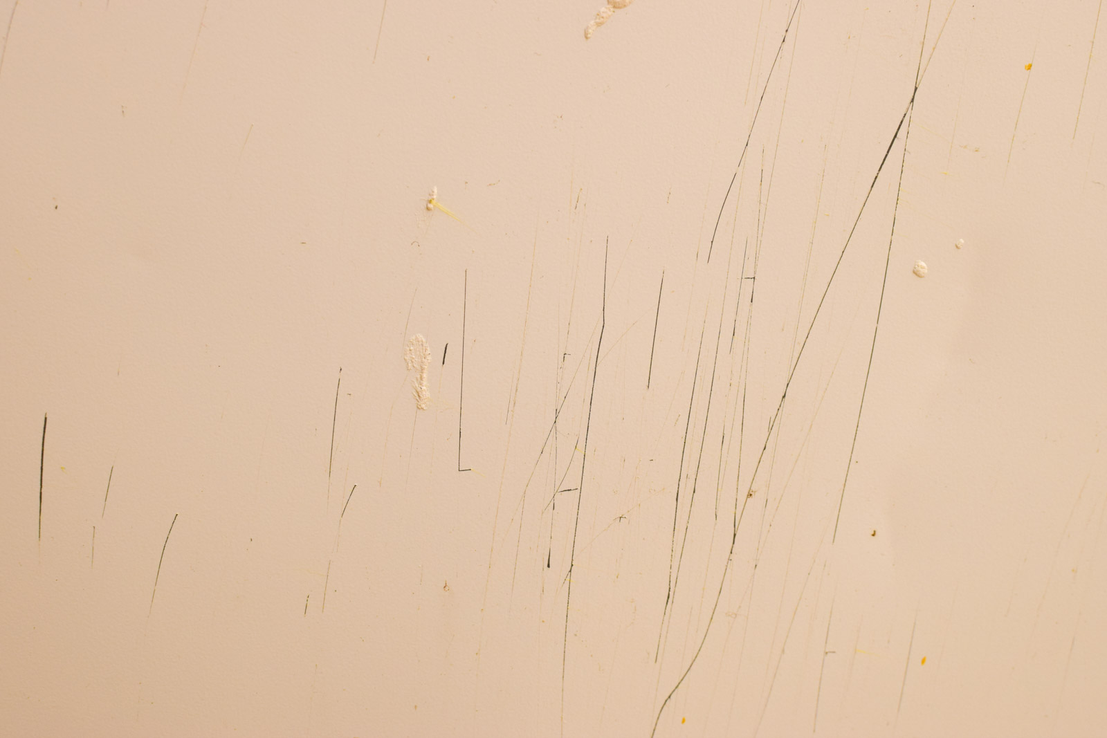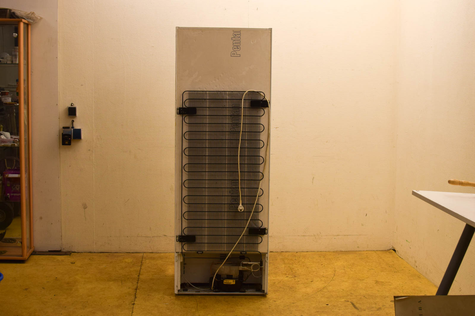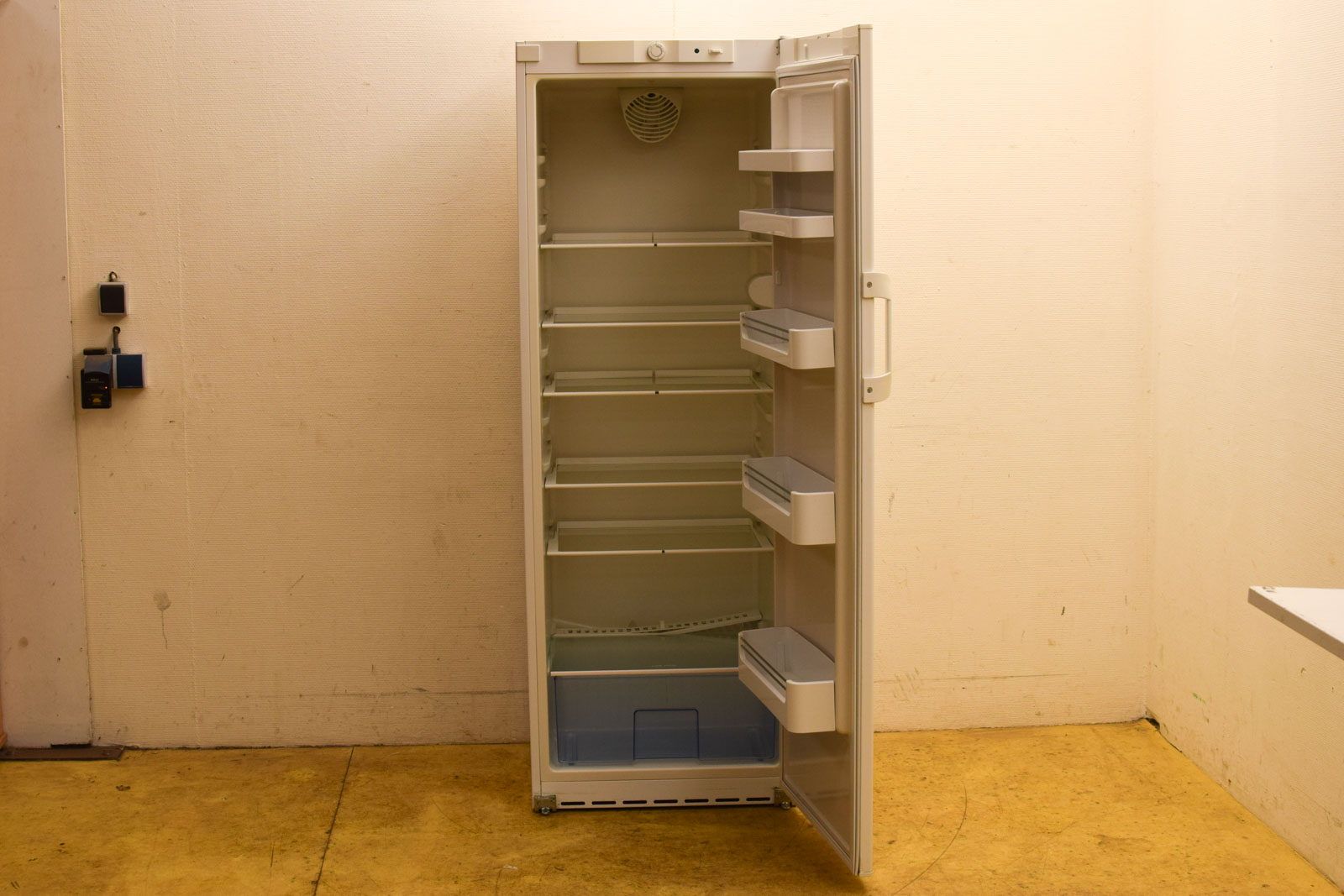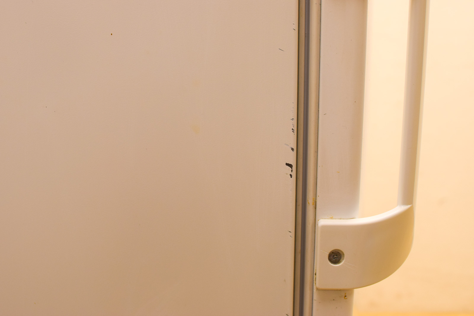 de plastic bak heeft een scheur aan de voorkant de koelkast heeft aan de buitenkant krassen en vlekken en deukjes aan 1 zijkant heeft de koelkast een gele streep