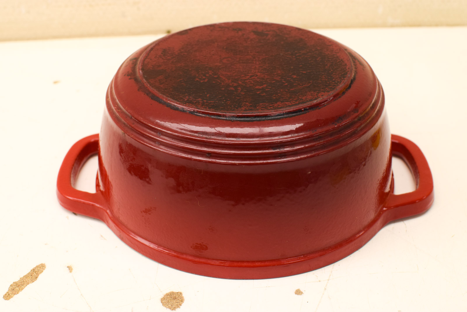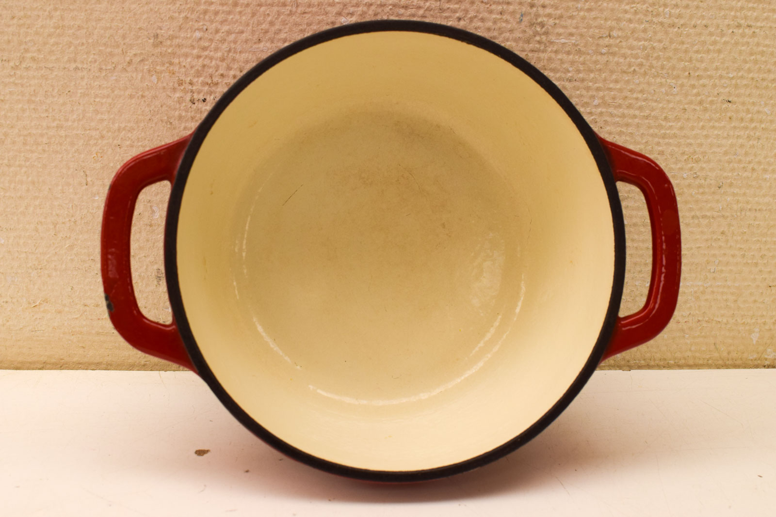 de braadpan heeft krassenen aanslag aan de binnenkant gemeten van oor tot oor 28,5 cm gemeten zonder deksel hoog 10 cm de pan heeft roestplekken