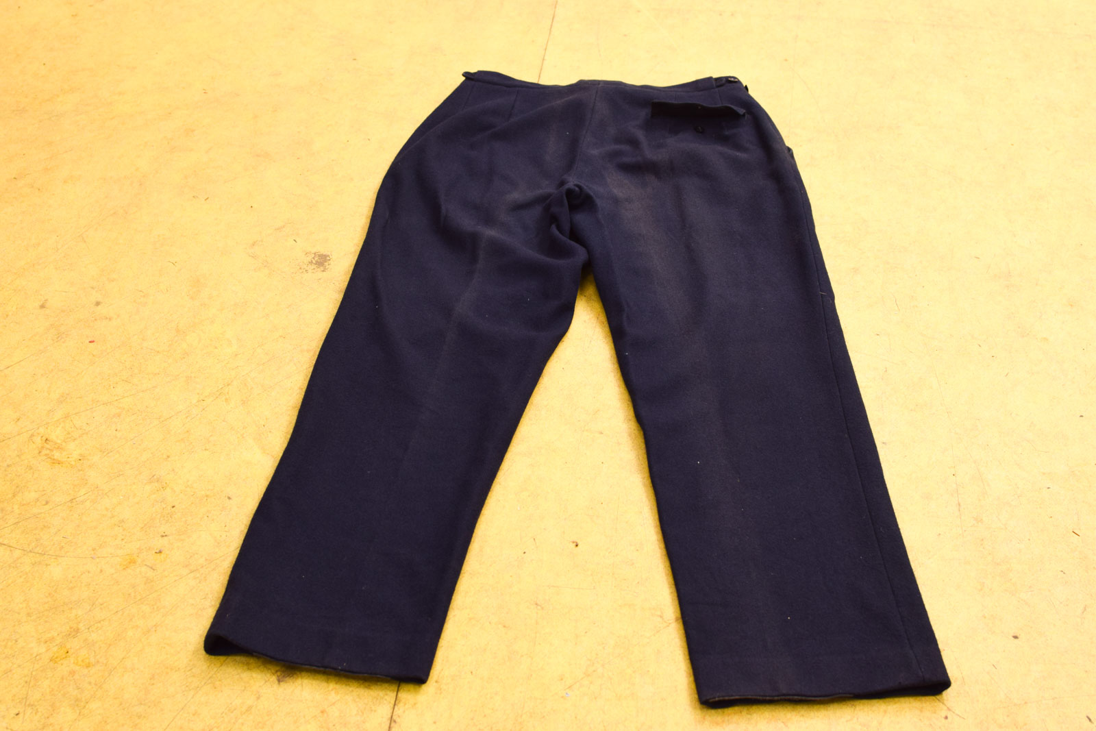de broek is nog heel de broek is verkleurd staat geen maat is maar is breed 37 cm broekspijpen zijn lang 114 cm de broekspijpen zijn aan de onderkant breed 25 cm