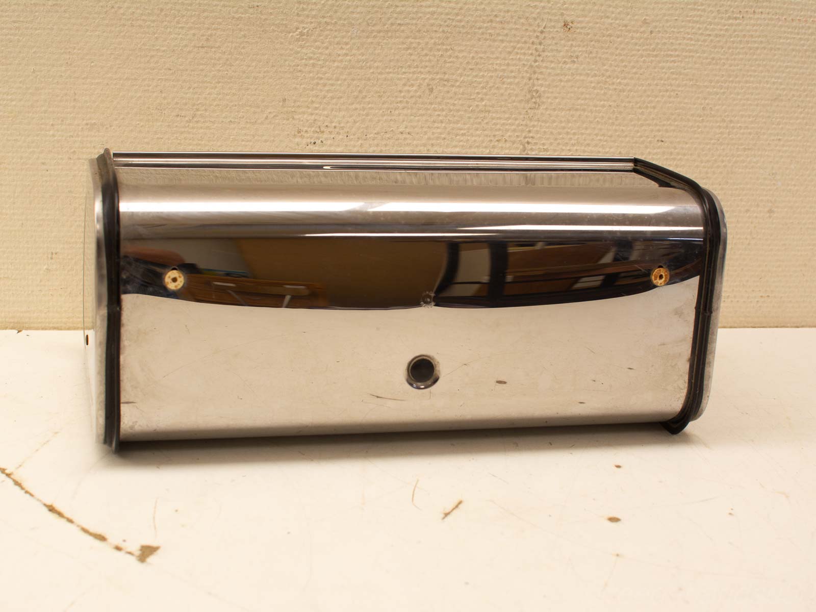 de broodtrommel heeft wat vlekken en is gebruikt de klep gaat nog goed open en dicht