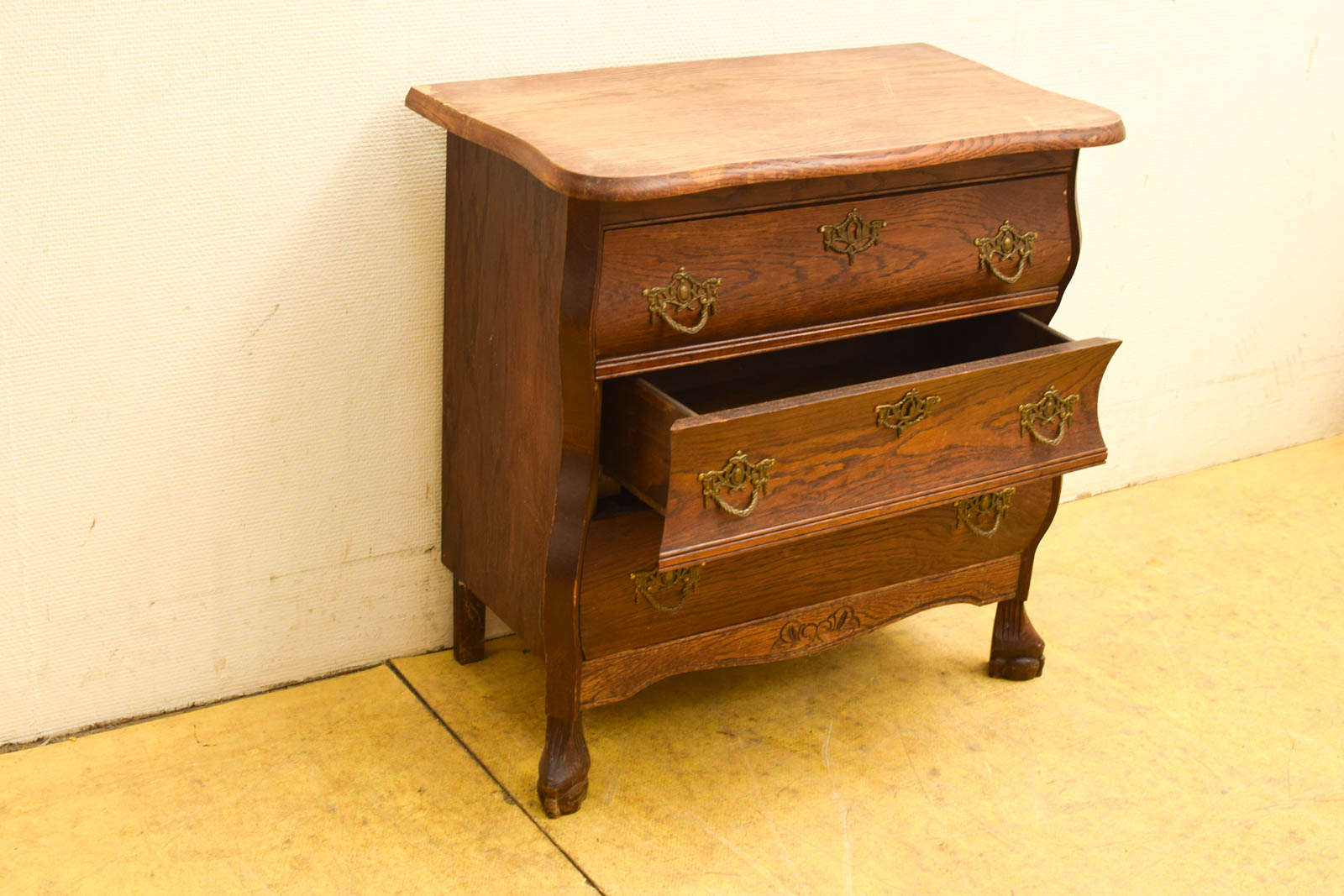 de buikkast heeft schade op het bovenblad zie foto het kastje heeft gebruikssporen zoals krassen en verkleuring vooral het bovenblad hoogte 65,5 cm