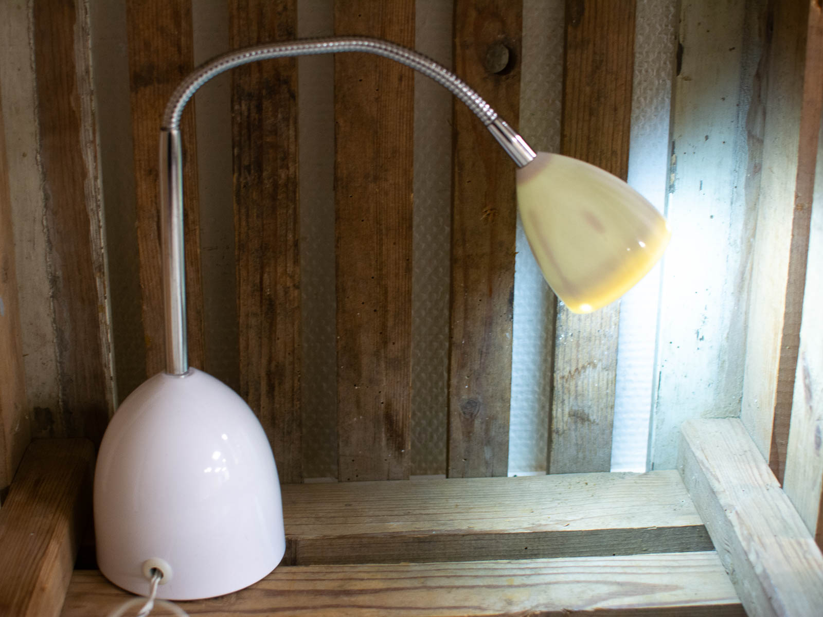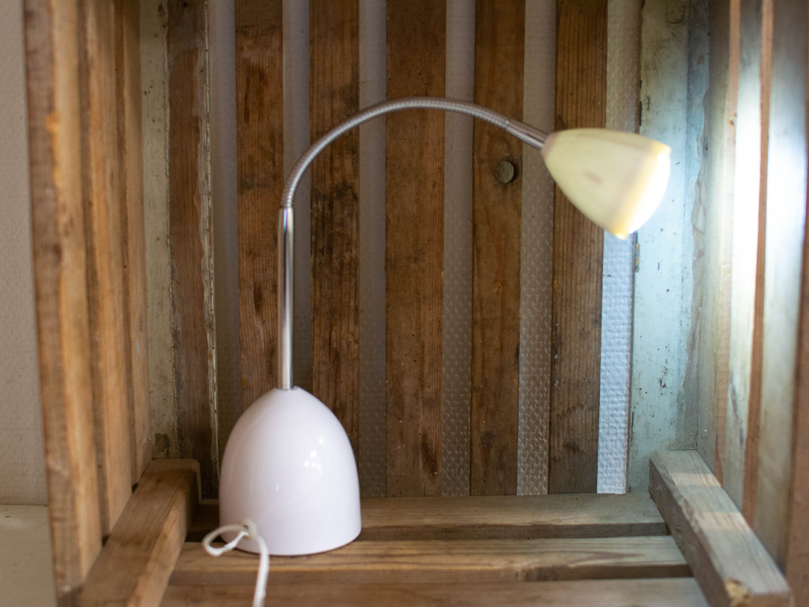 de lamp is buigzaam hoogste stand 50 cm laagste stand 28 cm
