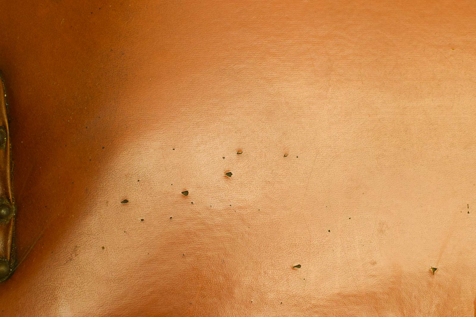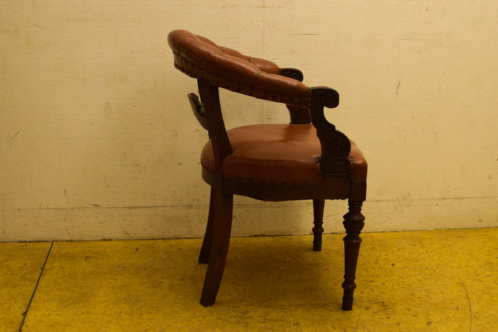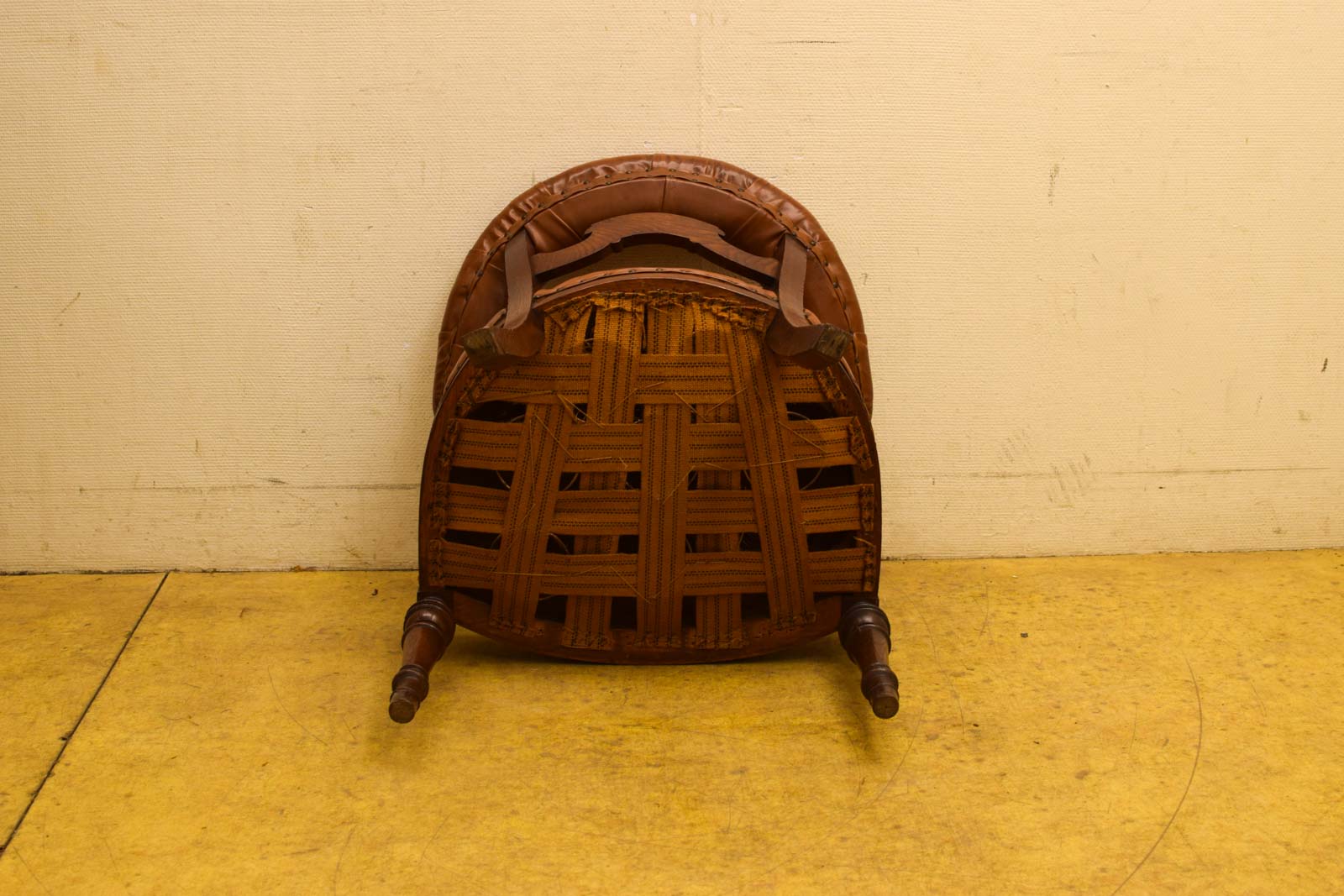 gemeten met leunings breed 61 cm de bureaustoel heeft gebruikssporen en heeft beschadiging van de zitvlak