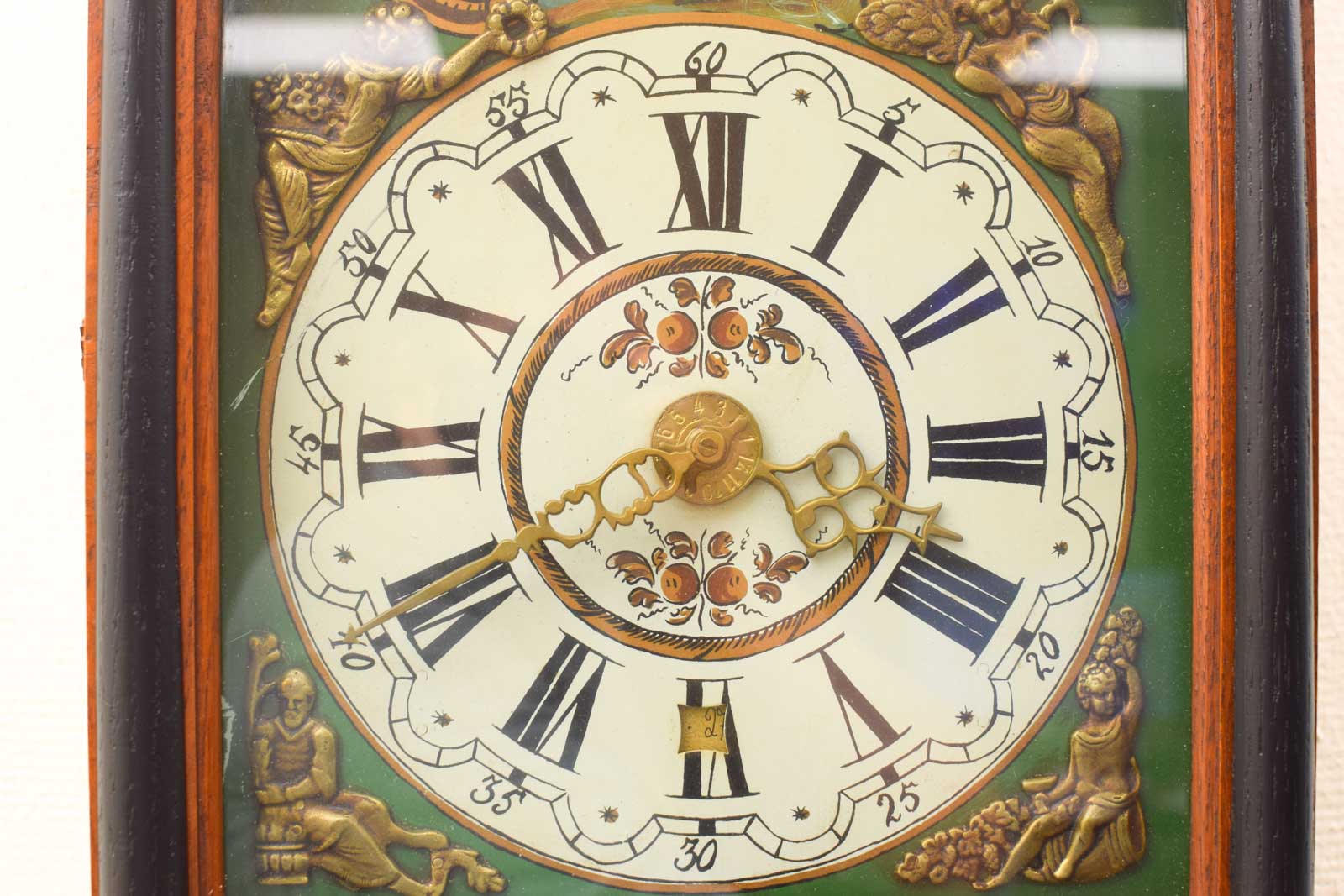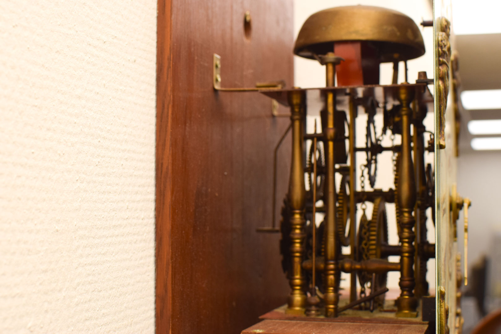 heeft maand en datum de klok loopt er mist een stukje hout op de kas
