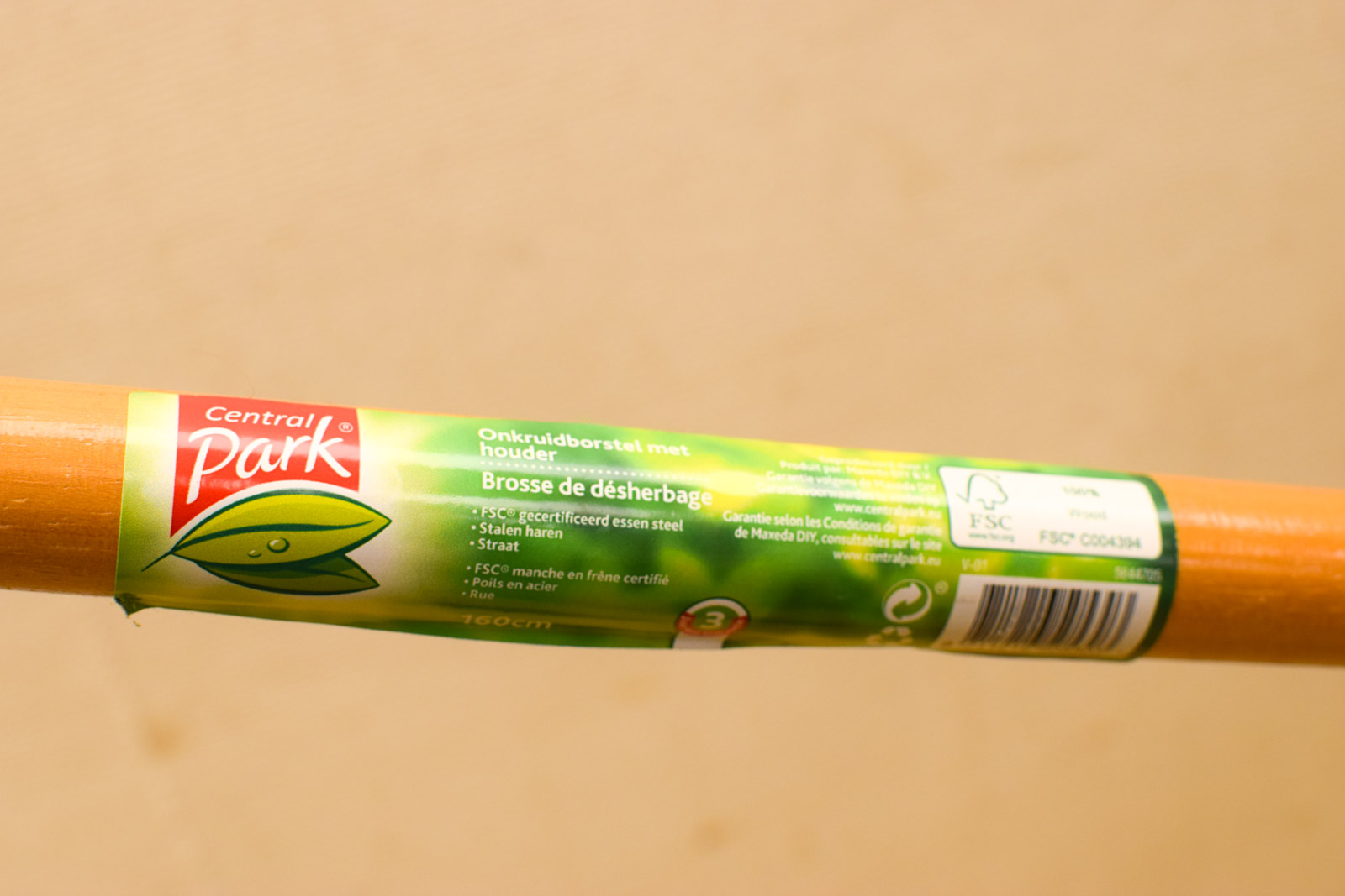 Central Park onkruidborstel met steel van 166 cm. Dit tuingereedschap is gebruikt maar nog in redelijke staat. Ideaal voor het verwijderen van onkruid uit voegen en smalle ruimtes.