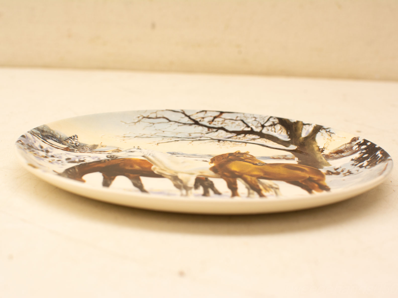 prent van paarden in de winter in de wei diameter van het bord 21,5 cm