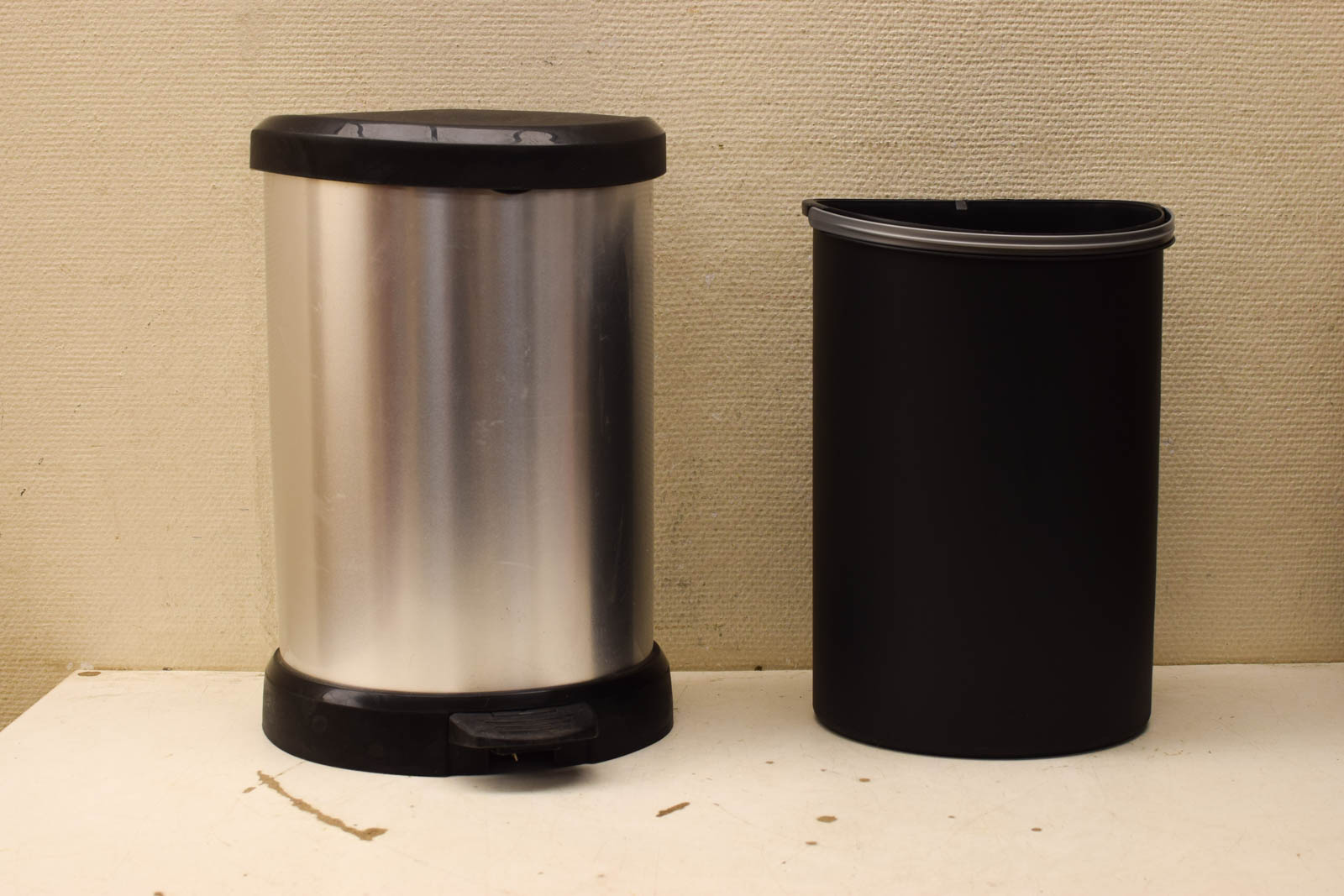 de pedaal werke de prullenbak is gebruikt en heeft gebruikssporen maar nog heel