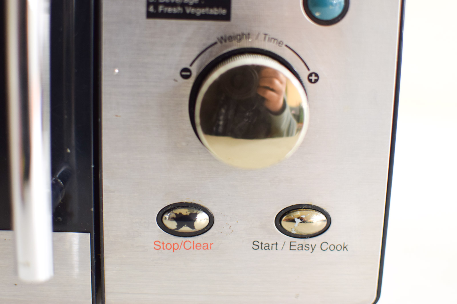 is getest en gaat aan de magnetron heeft vlekken ook aan de knop zie foto