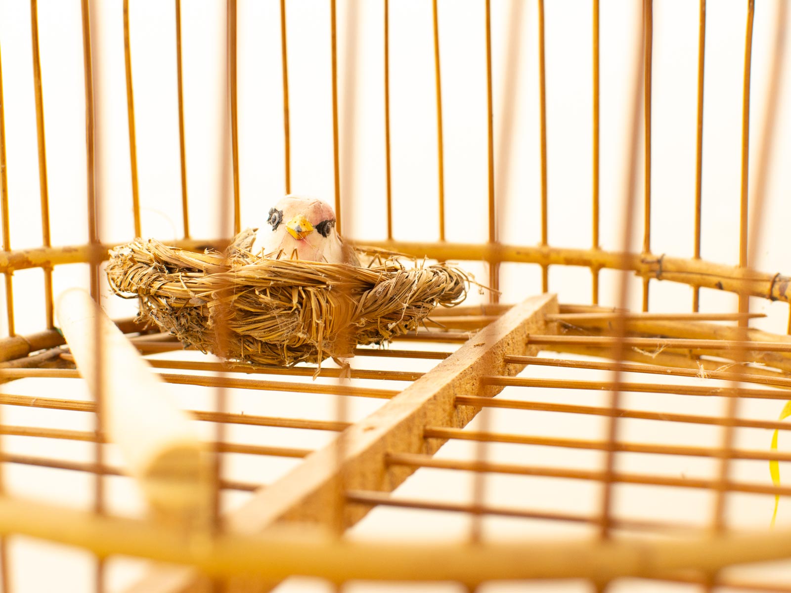 een nep vogeltje op een nestje zit in de kooi diameter 33 cm
