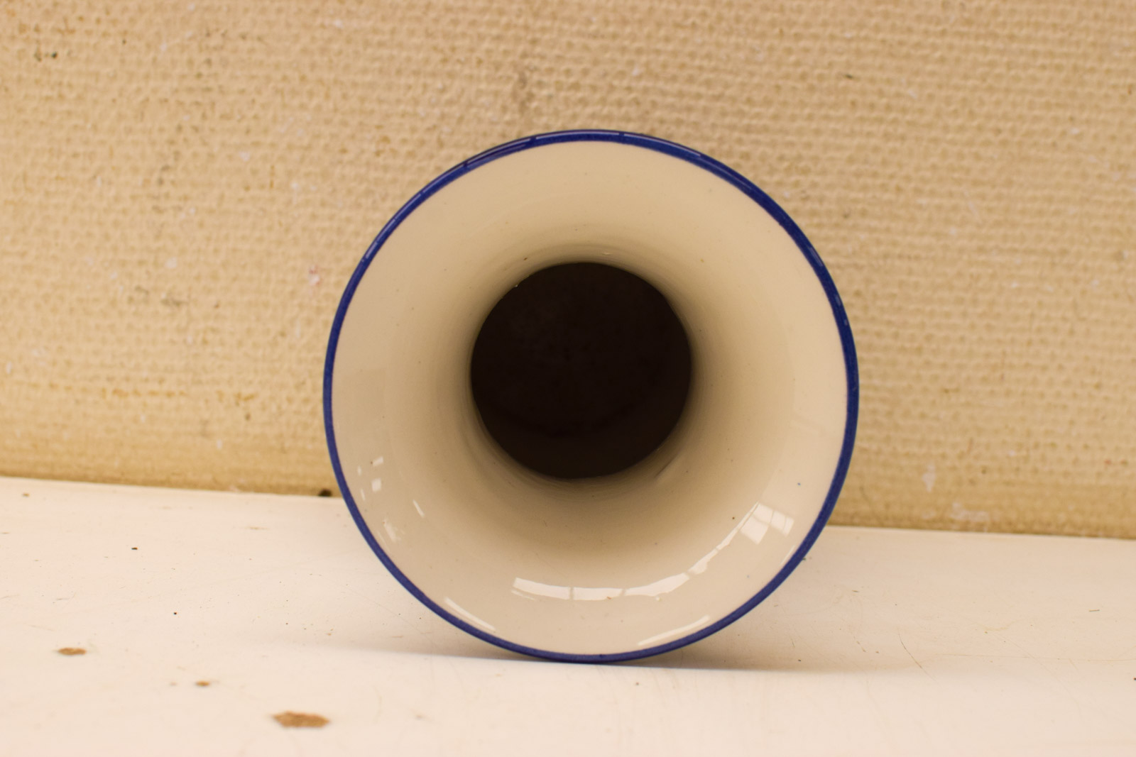 diameter bovenkant opening 12,5 cm hoog 26 cm de vaas heeft aanslag aan de binnenkant