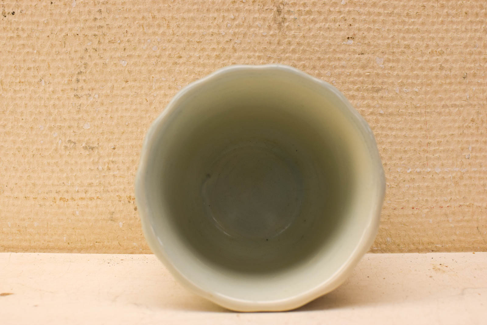 er is geen gat in de bodem de bodem de bloempot heeft krassen en vlekjes aan de binnenkant diameter bovenkant opening 13 cm hoog 11,5 cm