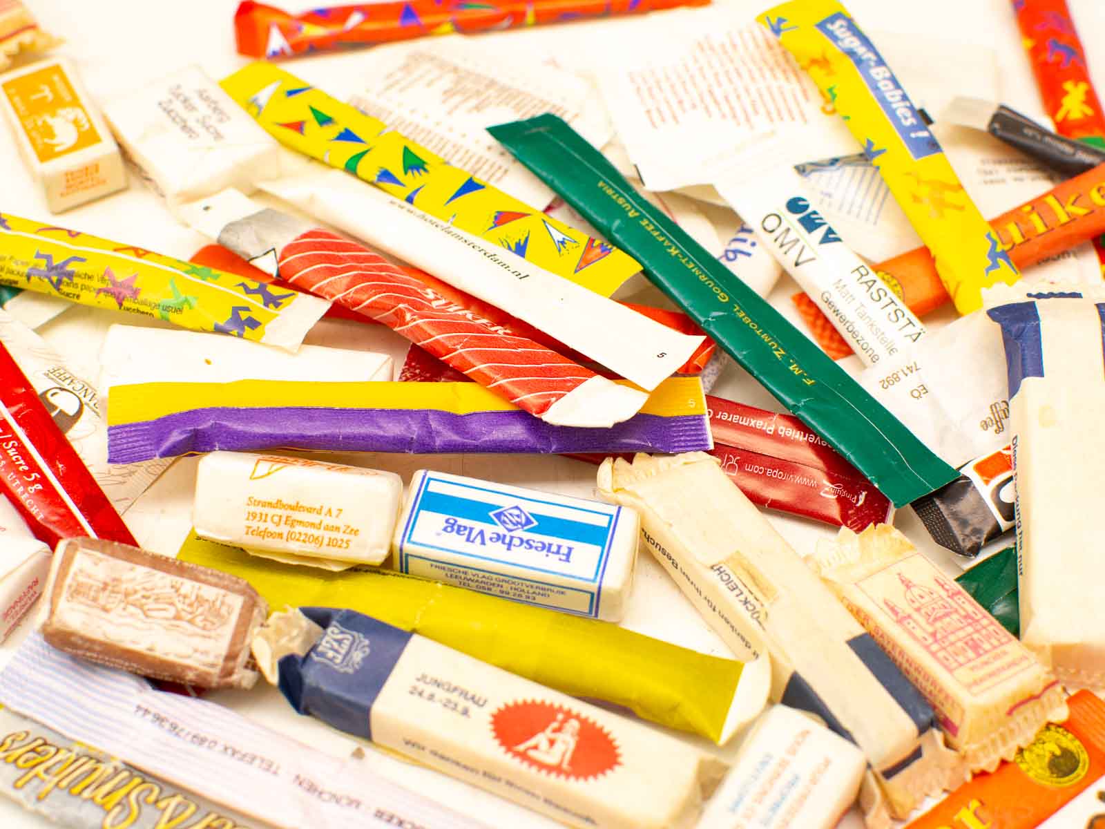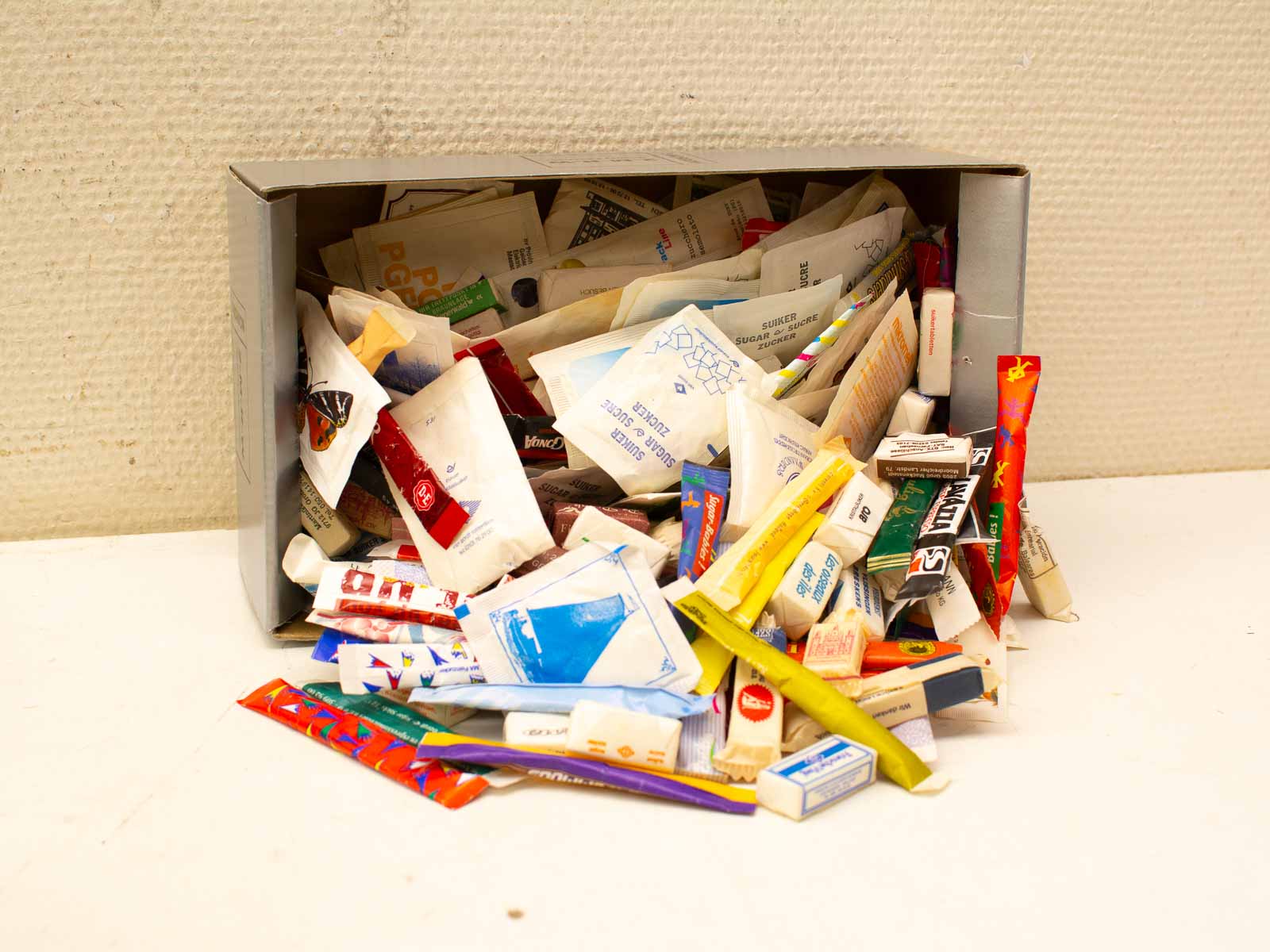 er zitten ook suikerklontjes bij in de zakjes zit suiker ze zitten in een schoenendoosje