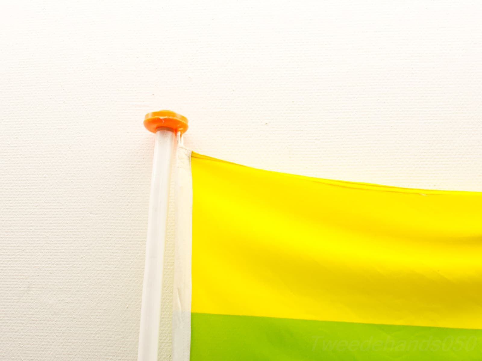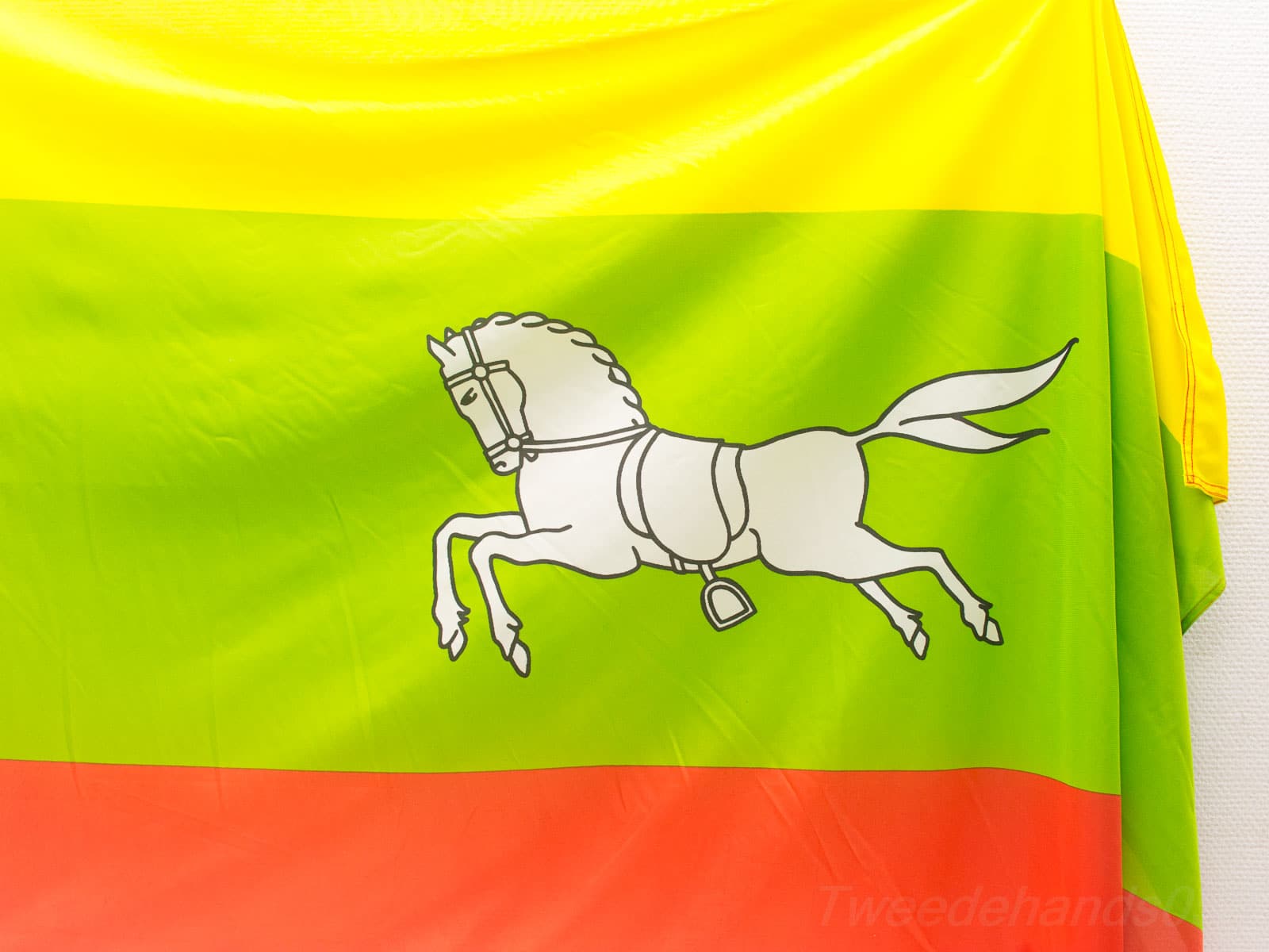 Een dorpsvlag van Zuidlaren inclusief met vlaggenstok. De stok is 2 meter en diamer 3 cm, de vlag is 158 cm breedte en 100 cm hoog. De stok heeft gebruikerssporen.