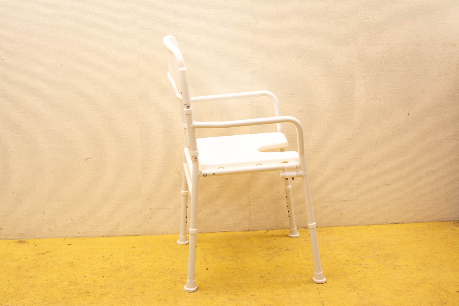 de douchestoel is in hoogte te verstellen