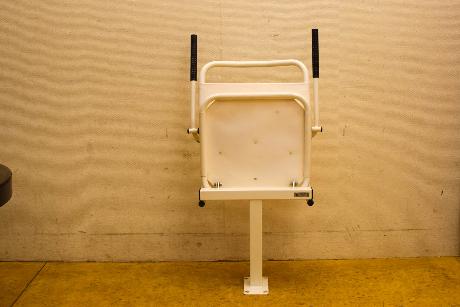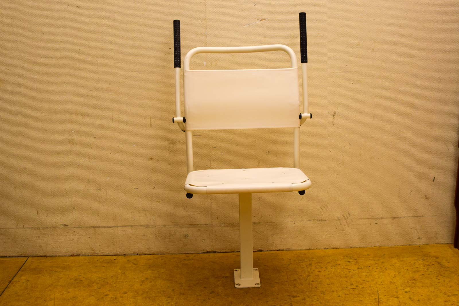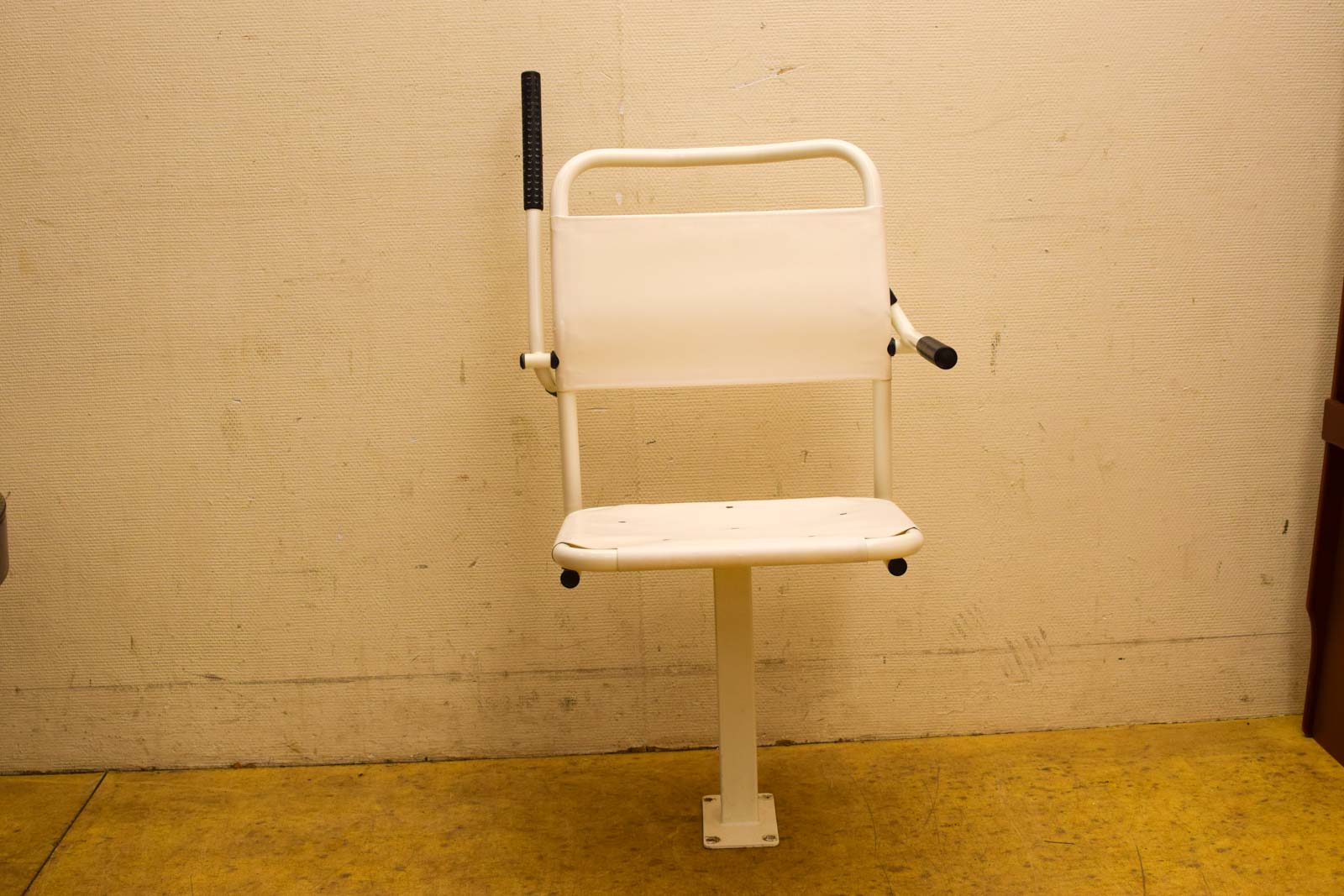 is gebruikt heeft gebruikssporen de stoel is inklapbaar de poot niet gemeten met armleuning breedte 51 cm zithoogte 45,5 cm