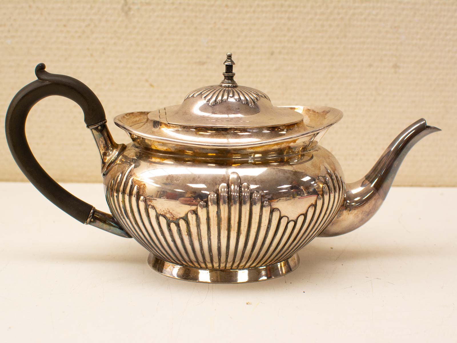 de koffie en de theepot hebben bruinr aanslag de theepot van oor tot tuit 22 cm hoog 21 cm melkkannetje van oor tot tuit 12,5 cm hoogte 8,5 cm koffiekan van oor tot tuit gemeten 28 cm hoogte 10,5 cm het servies heeft een poetsbeurt nodig dan glimt ie weer
