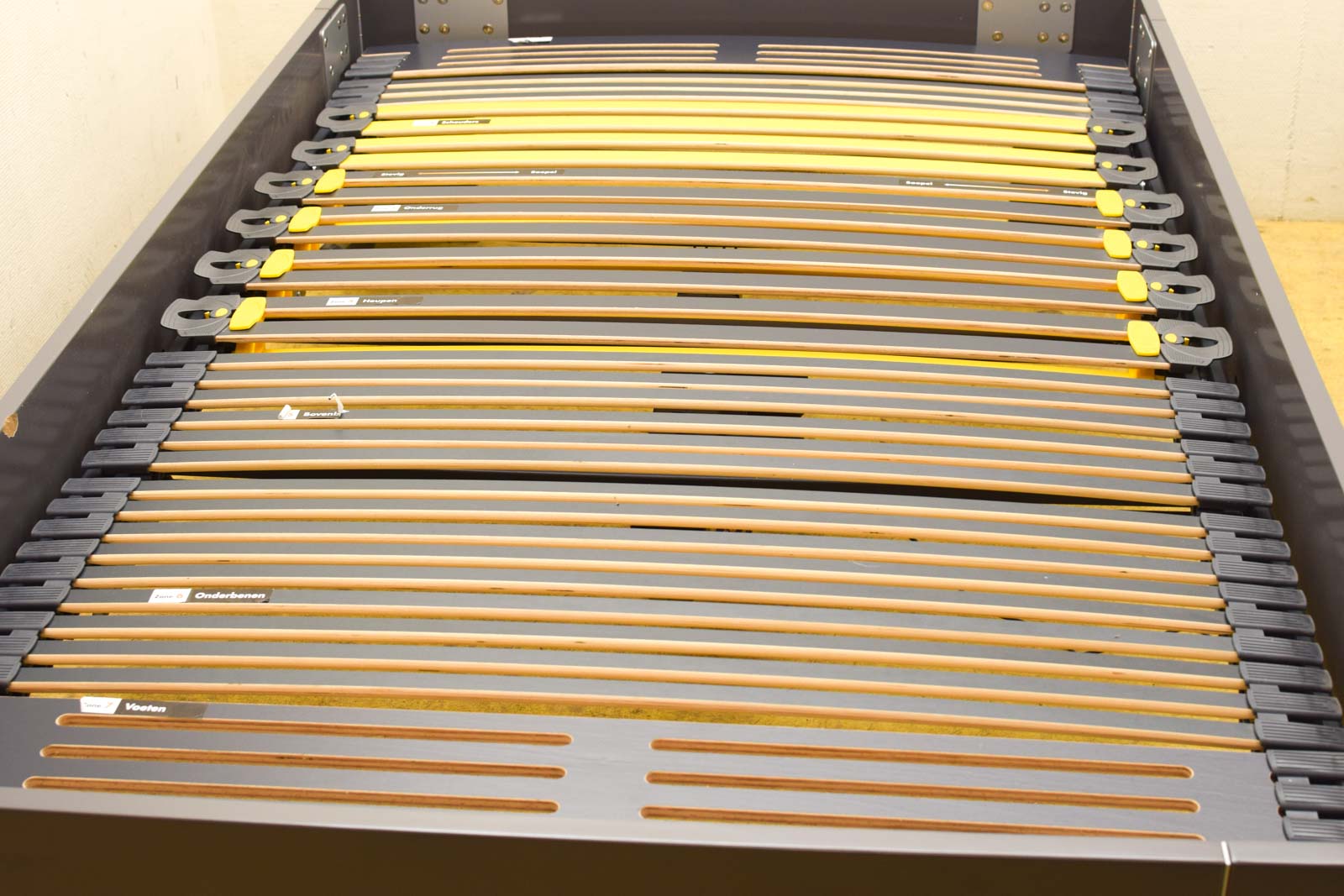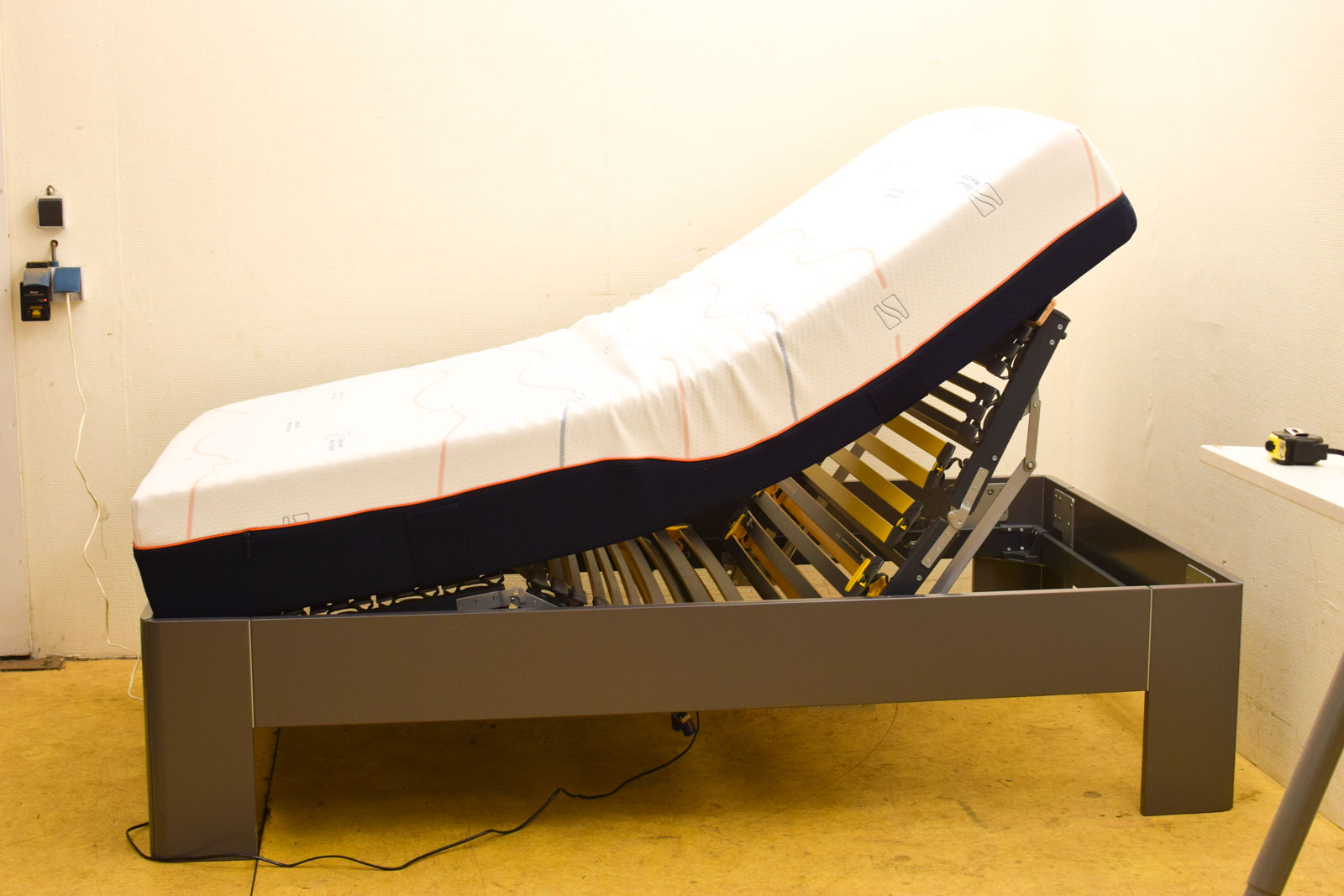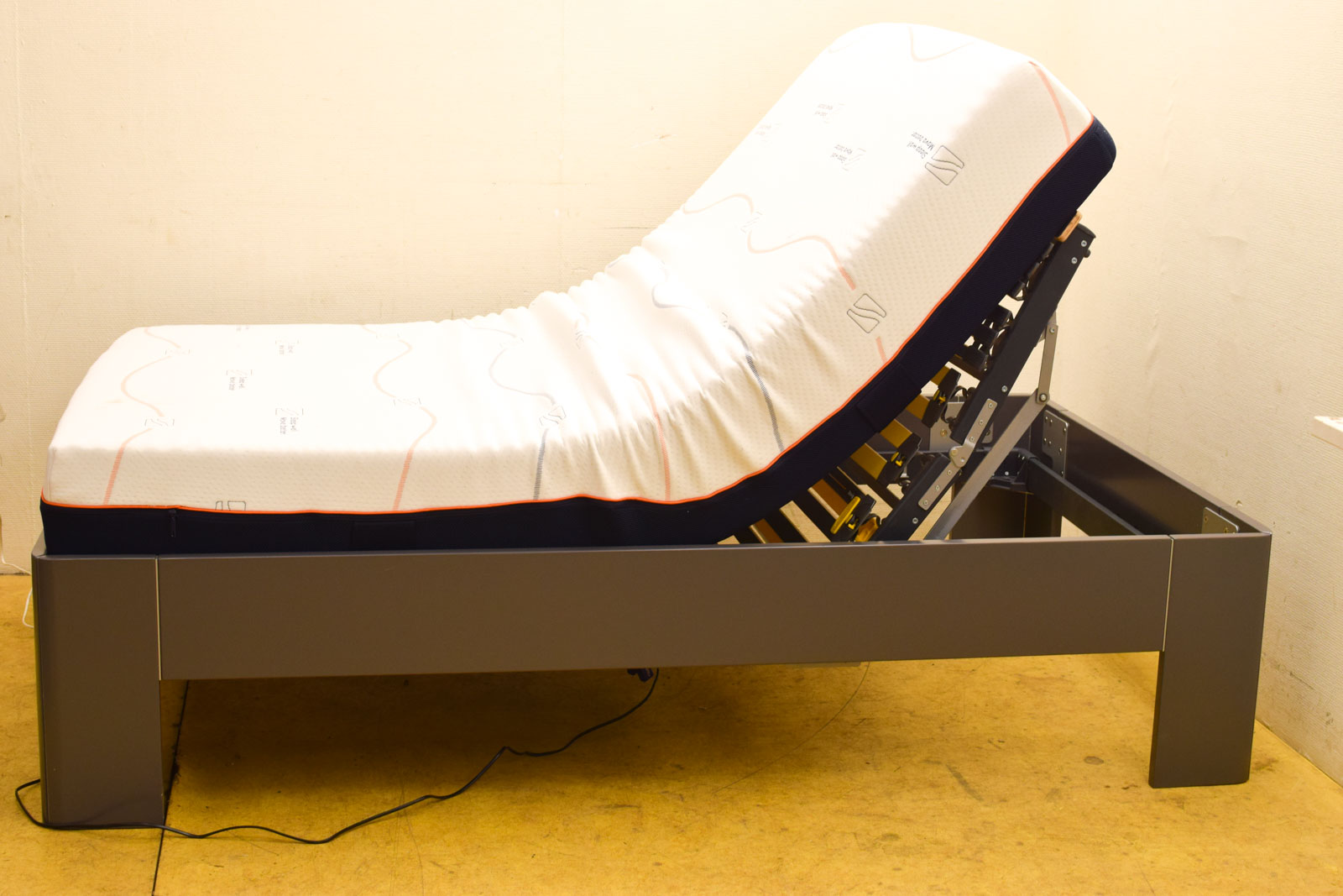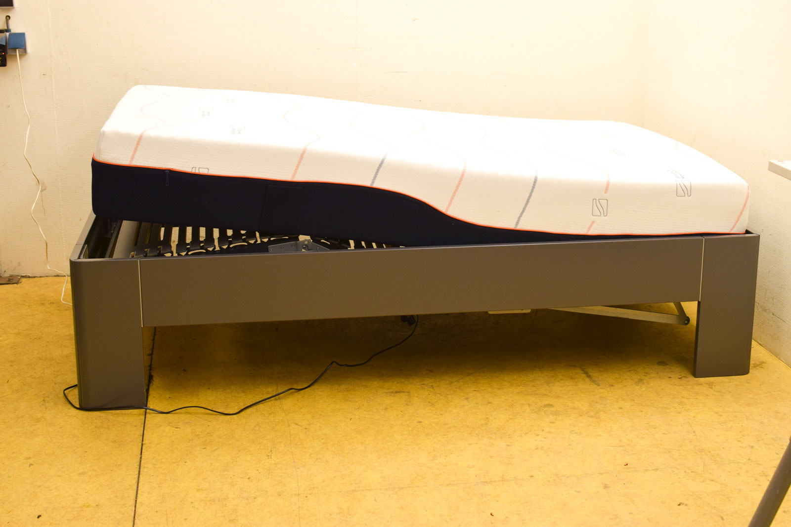 is opgemeten zoals de 1ste foto heeft een beschadiging zie foto de matras heeft vlekken het bed doet het met afstandsbediening gemeten zoals op de 1ste foto