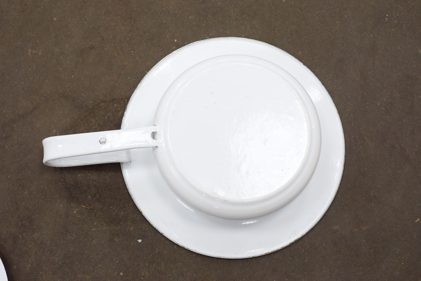 de deksel heeft een roest vlek alleen de ronde gedeelte gemeten 30,5 cm gemeten met hendel 40 cm hoog 7,5 cm