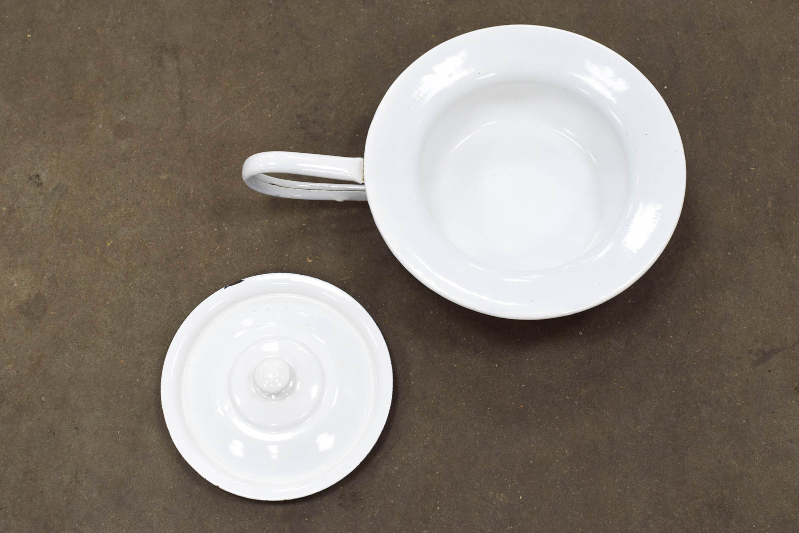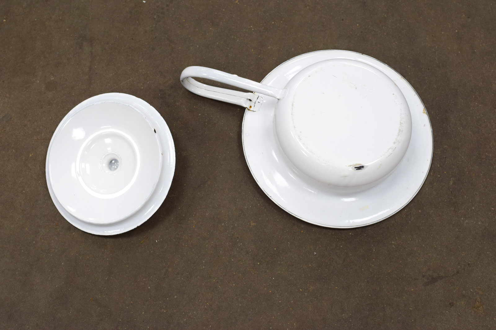 de ondersteek is gebruikt en heeft een enkele roestplekjes alleen de ronde gedeelte gemeten diameter 30,5 cm met handvat gemeten breed 41 cm hoog 8,5 cm
