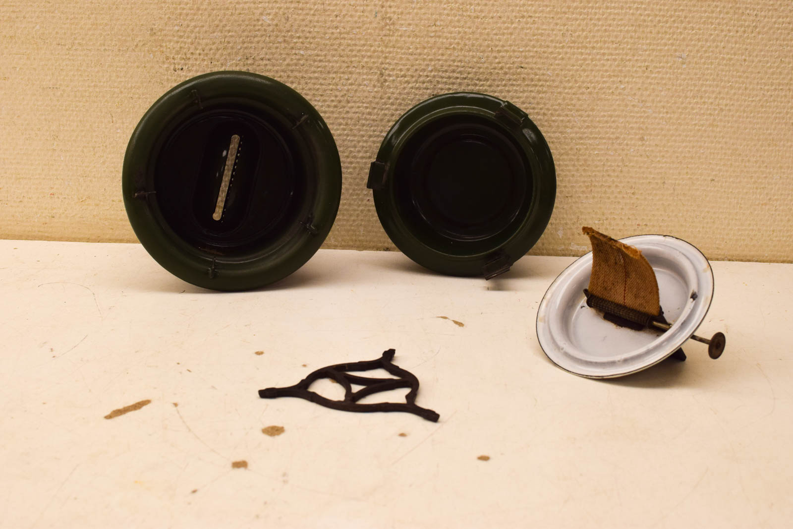 is een lont bij de petroleumstel heeft roestplekken en gebruikssporen helemaal gemeten hoog 19 cm diameter bovenkant gemeten met rand 18 cm