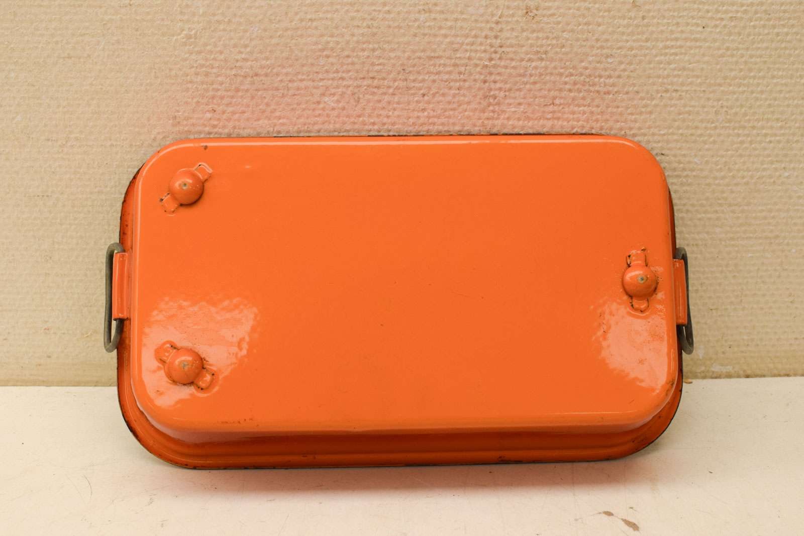 heeft aanslag en krassen en roest plekken breed 36,5 cm diepte 21,5 cm hoog 7,5 cm
