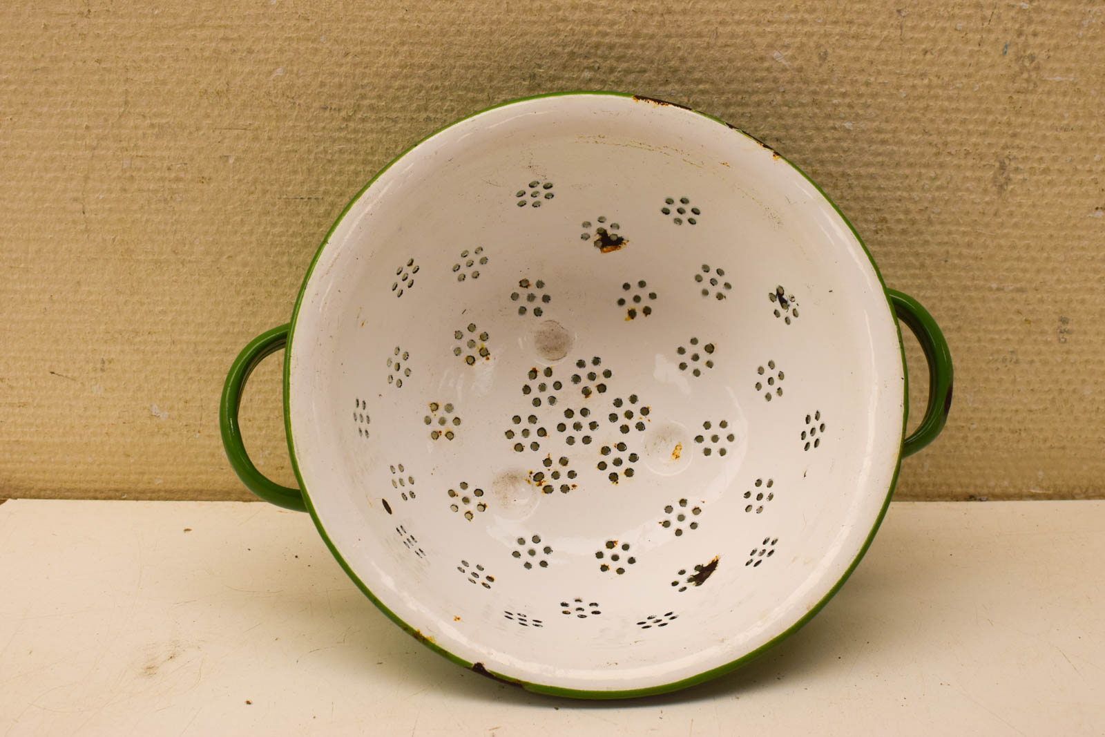 heeft roest en gebruikssporen bovenkant opening gemeten diameter 24 cm hoog 9 cm