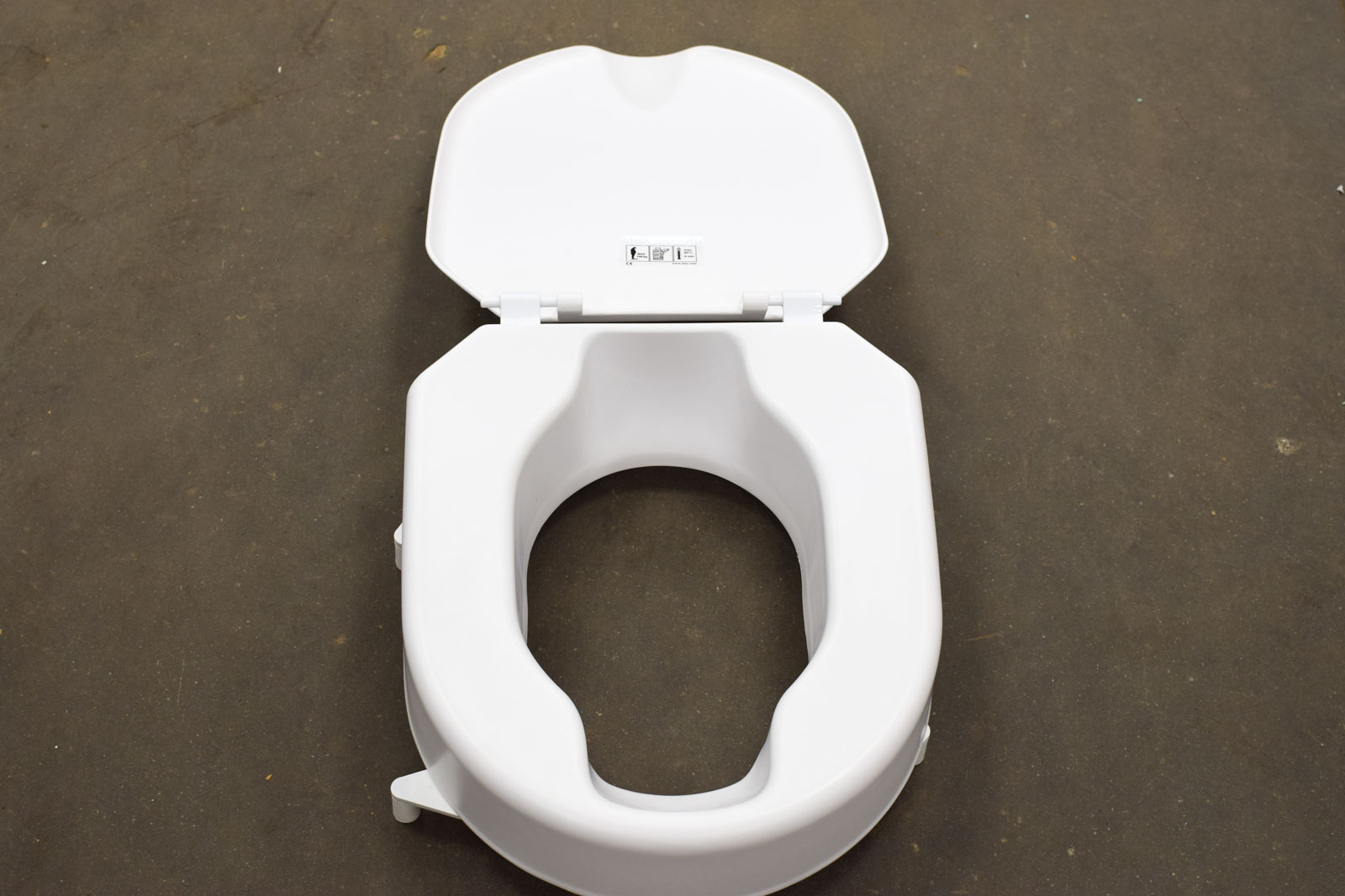 de toiletverhoger heeft een klep en ziet er nog redelijk uit