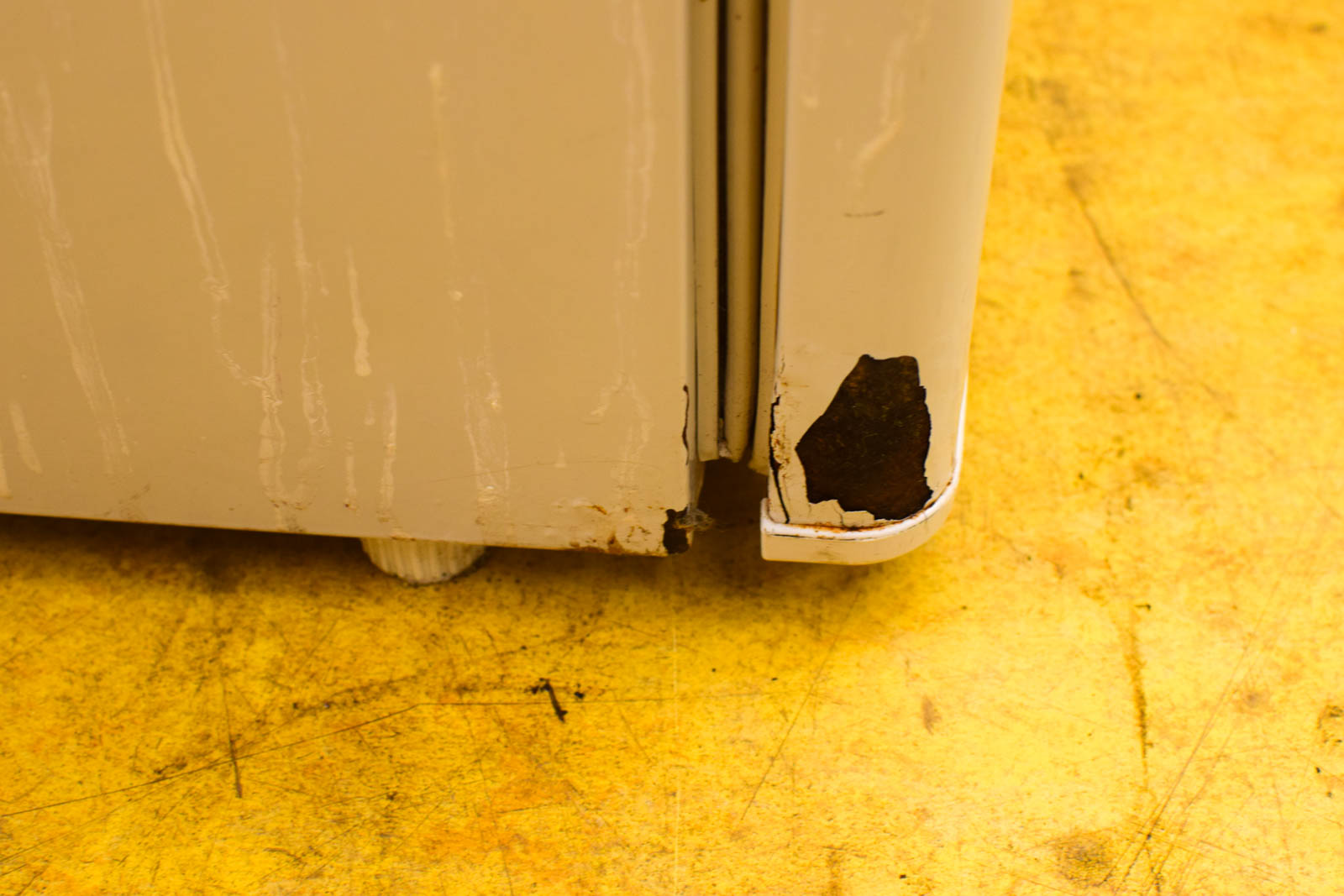 Over de staat: de koelkast heeft gebruikssporen en zichtbare roest aan de buitenkant. Er zijn deuken in het behuizing. Belangrijk om te weten: er ontbreekt een bak onderin en het oppervlak heeft vlekken. Dit zijn geen cosmetische details maar daadwerkelijke gebreken die je moet kennen voordat je koopt. Het toestel is beschikbaar tegen een lage prijs, passend bij de huidige conditie.