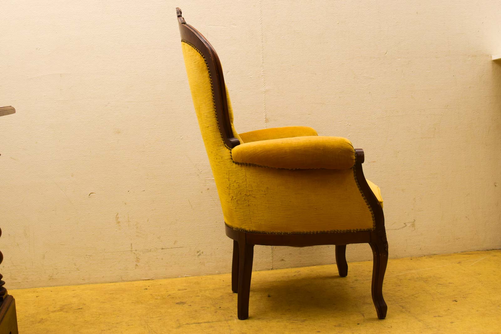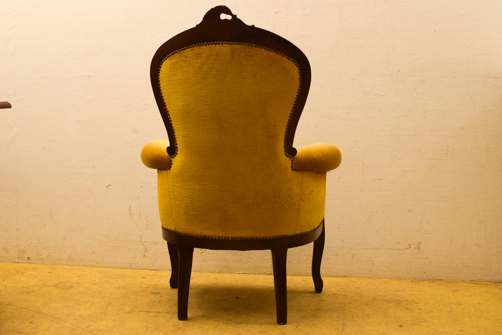 heeft beschadiging aan het stof zie foto de fauteuil heeft gebruikssporen gemeten met de leuning breedte 77 cm diepte 45 cm
