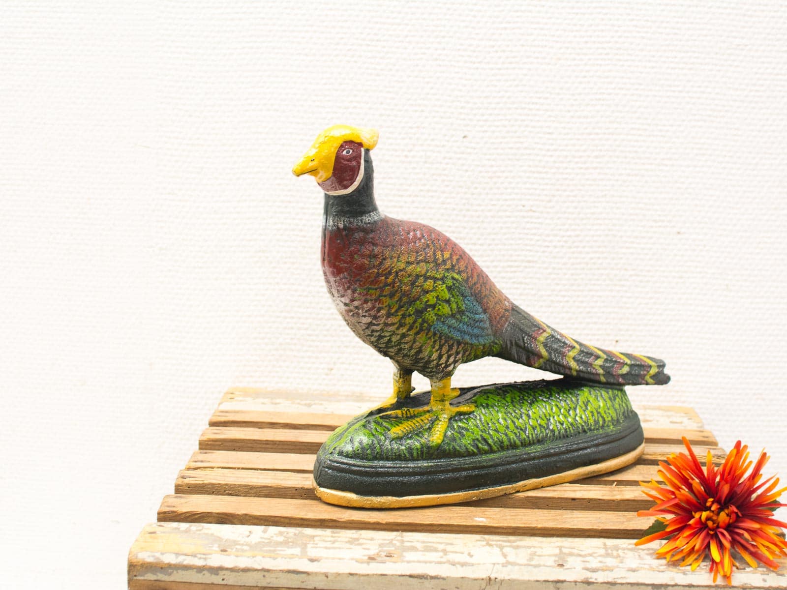 In nieuw staat deze prachtige kleurrijke gietijzeren fazant voor in de tuin of in huis.