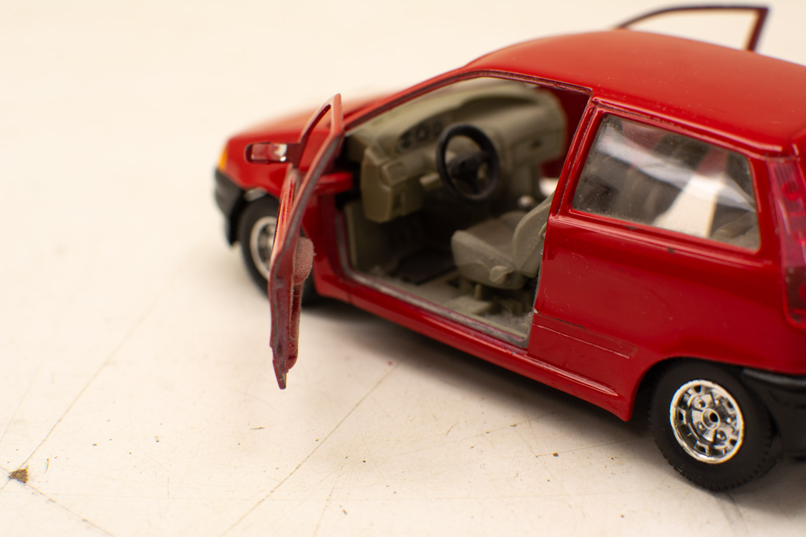 de deuren van de auto zitten geen ramen op de motorkap heeft de auto 2 krassen hoog 4,5 cm