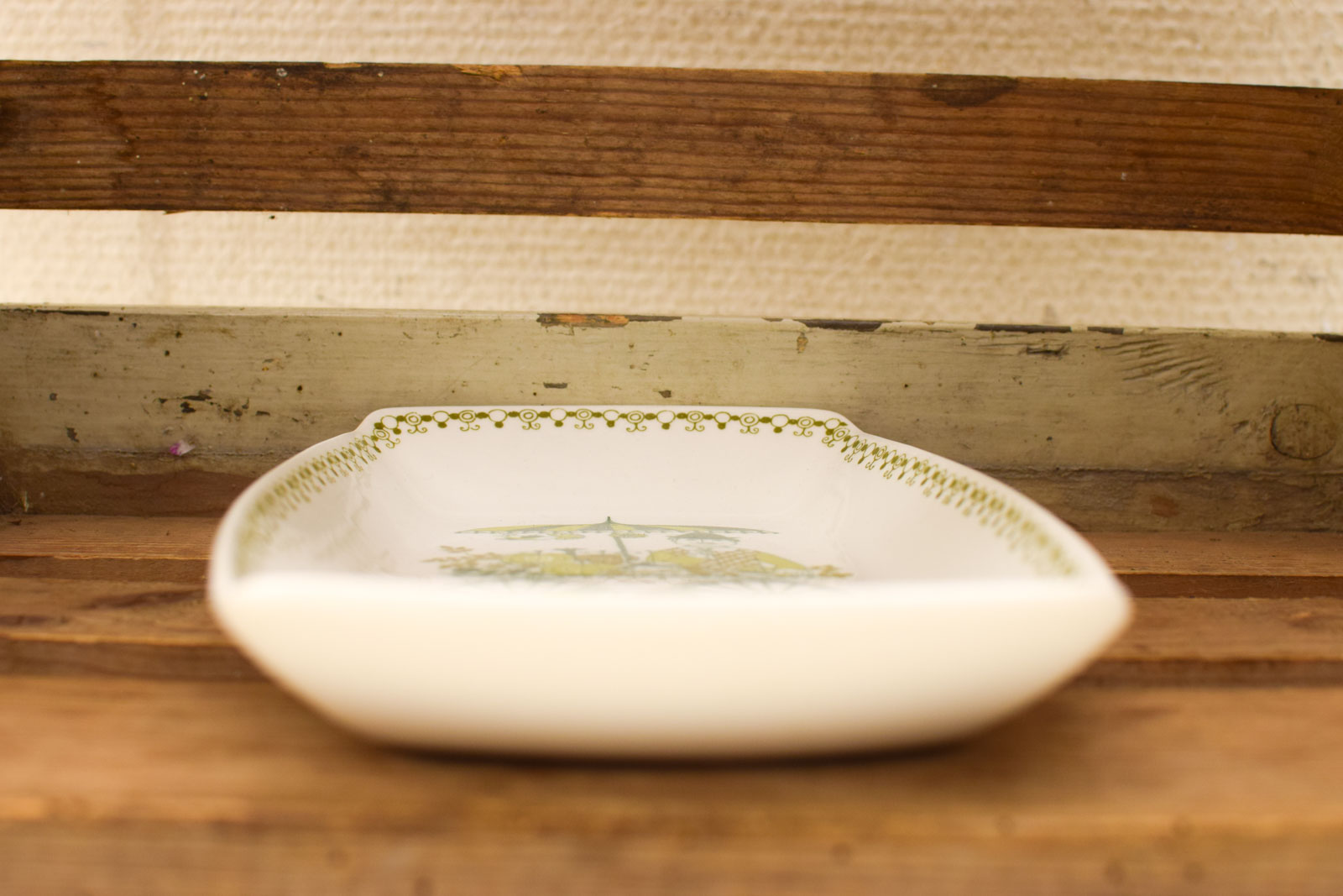 heeft slijtage aan het verf en heeft krasjes maar is nog heel