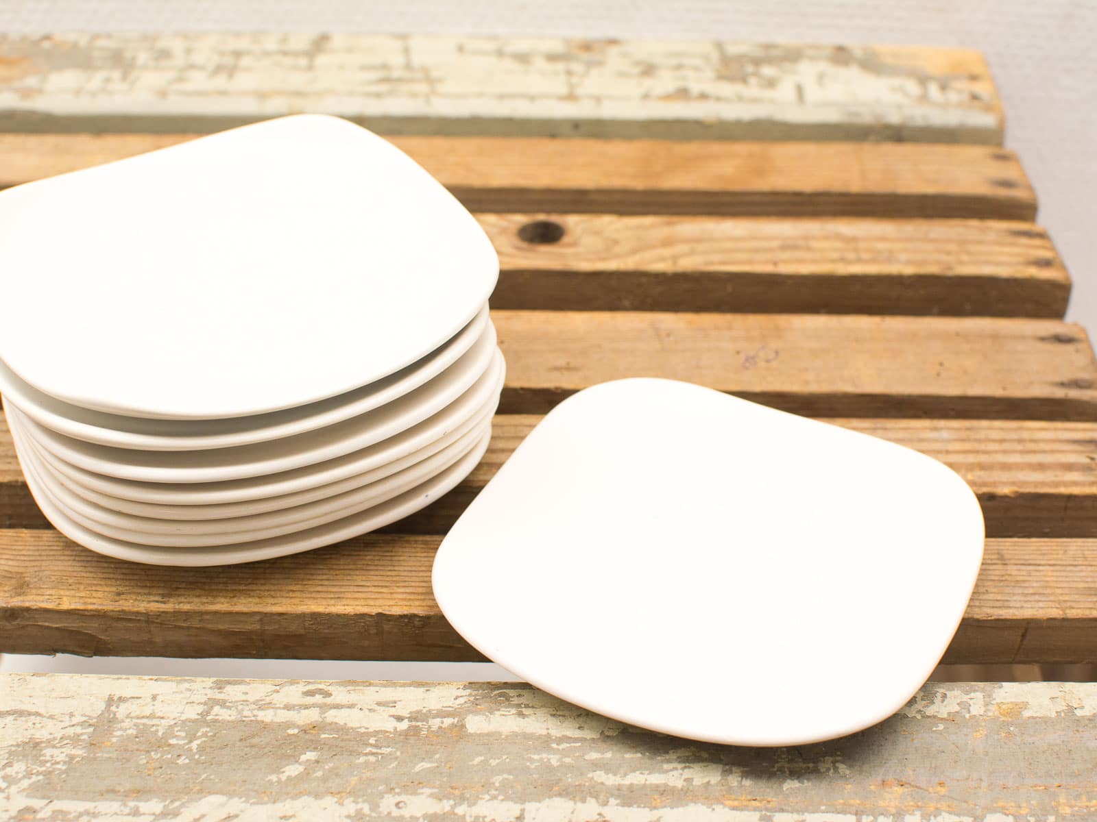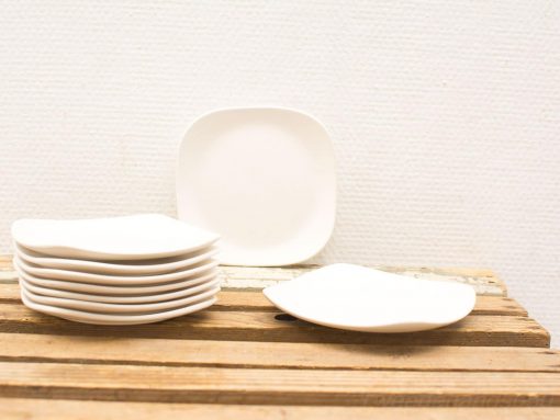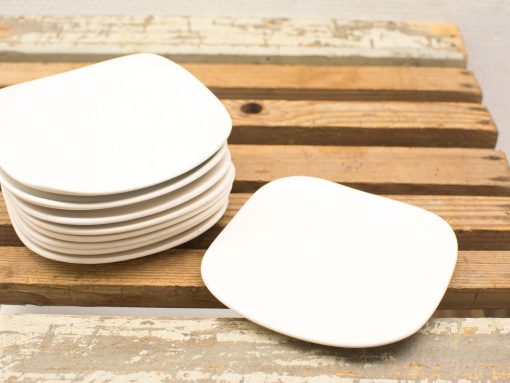 Een set van negen gebruikte schotels van het merk Flora Gouda. Materiaal: porselein. Hebben wat krasjes.