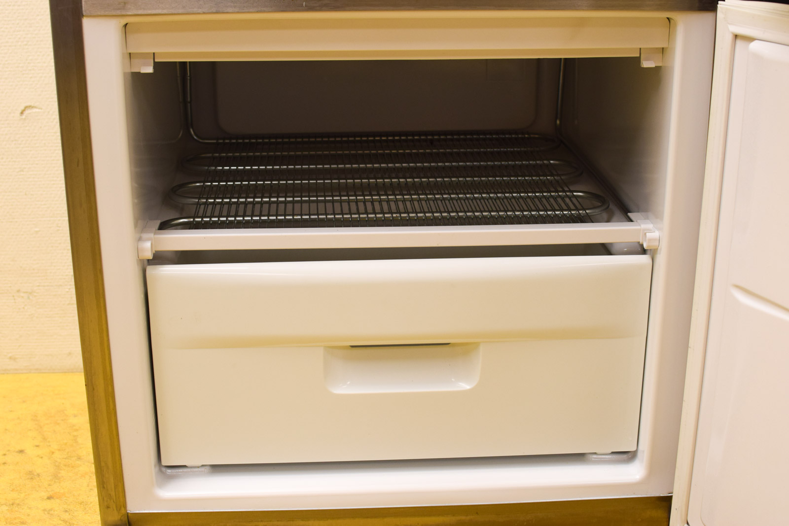 Class A de vriesvak mist een bak de dubbeldeurs koelkast is gebruikt en heeft aan de buitenkant krassen en vlekken door het gebruik breed 59,5 cm hoog 144,5 cm