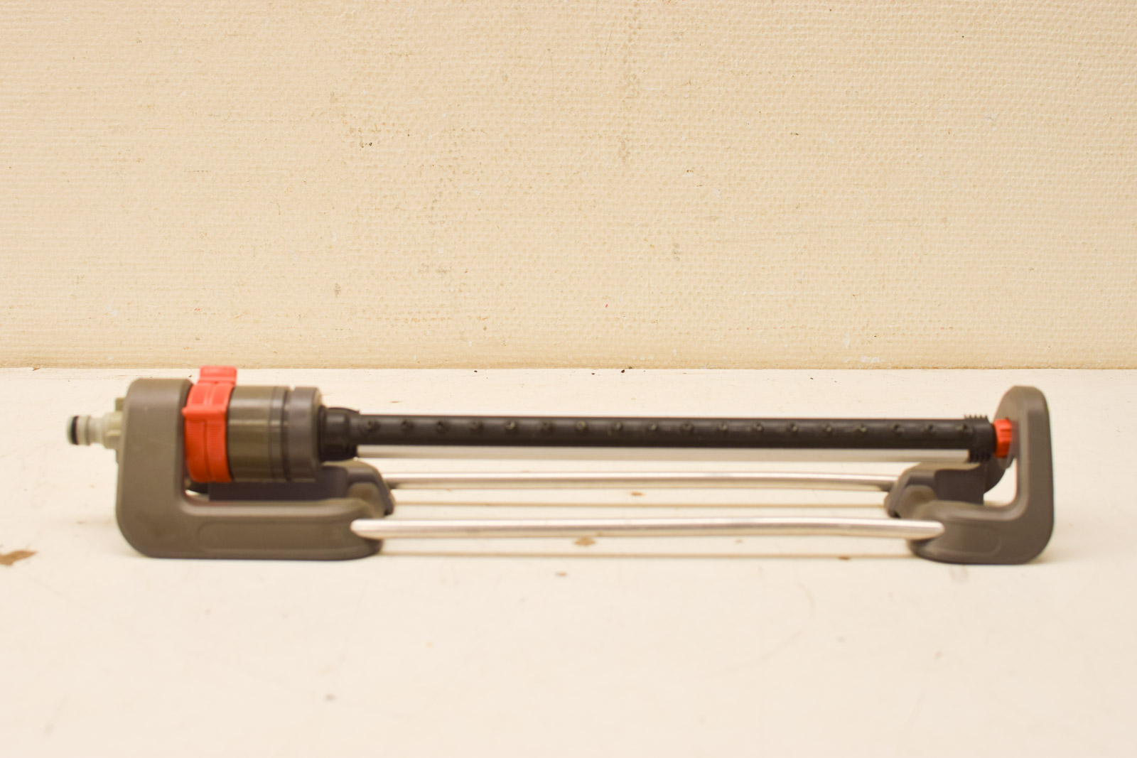 Handige Gardena zwenksproeier, ideaal voor het gelijkmatig besproeien van middelgrote tot grote oppervlakken in de tuin.