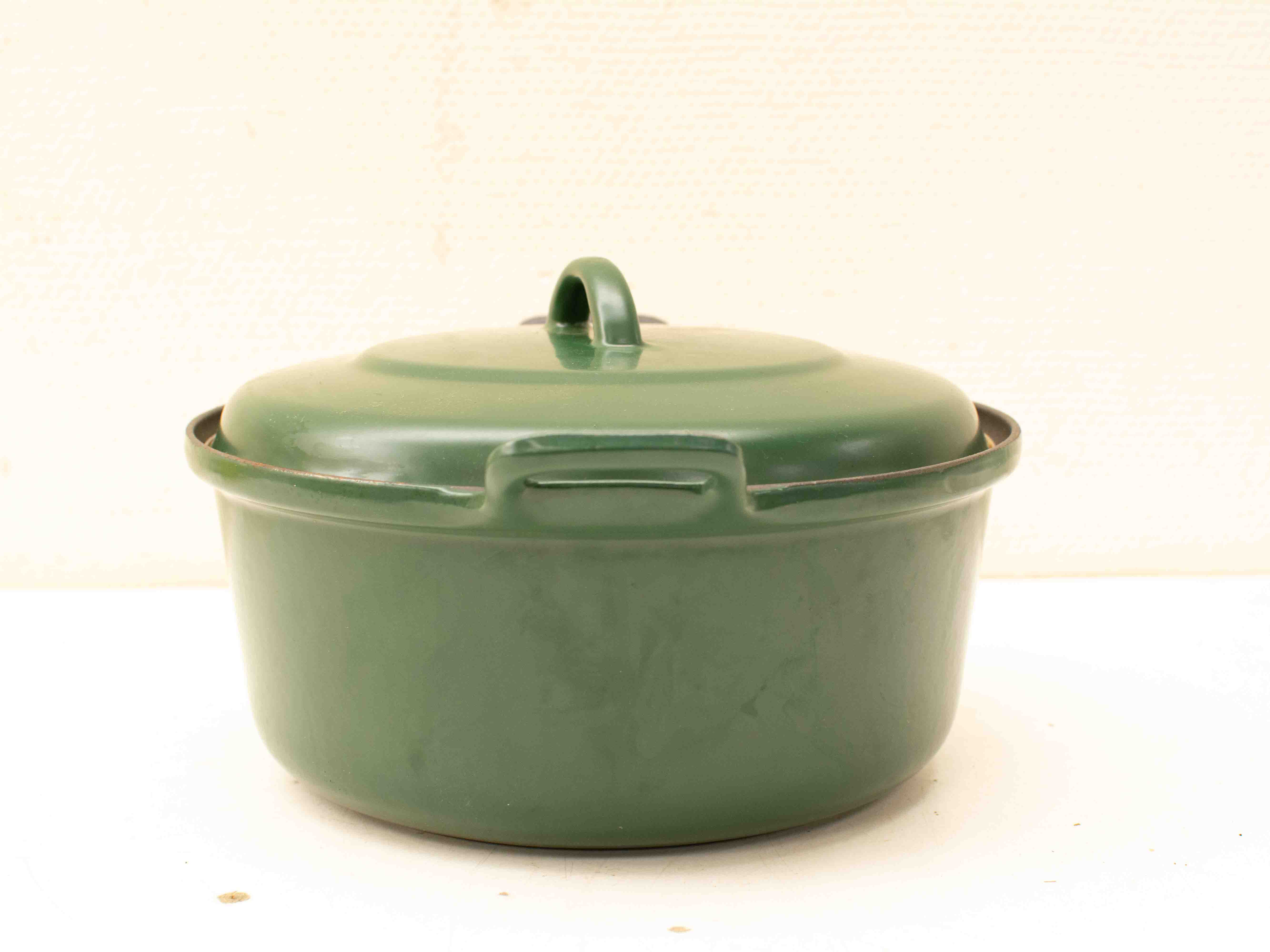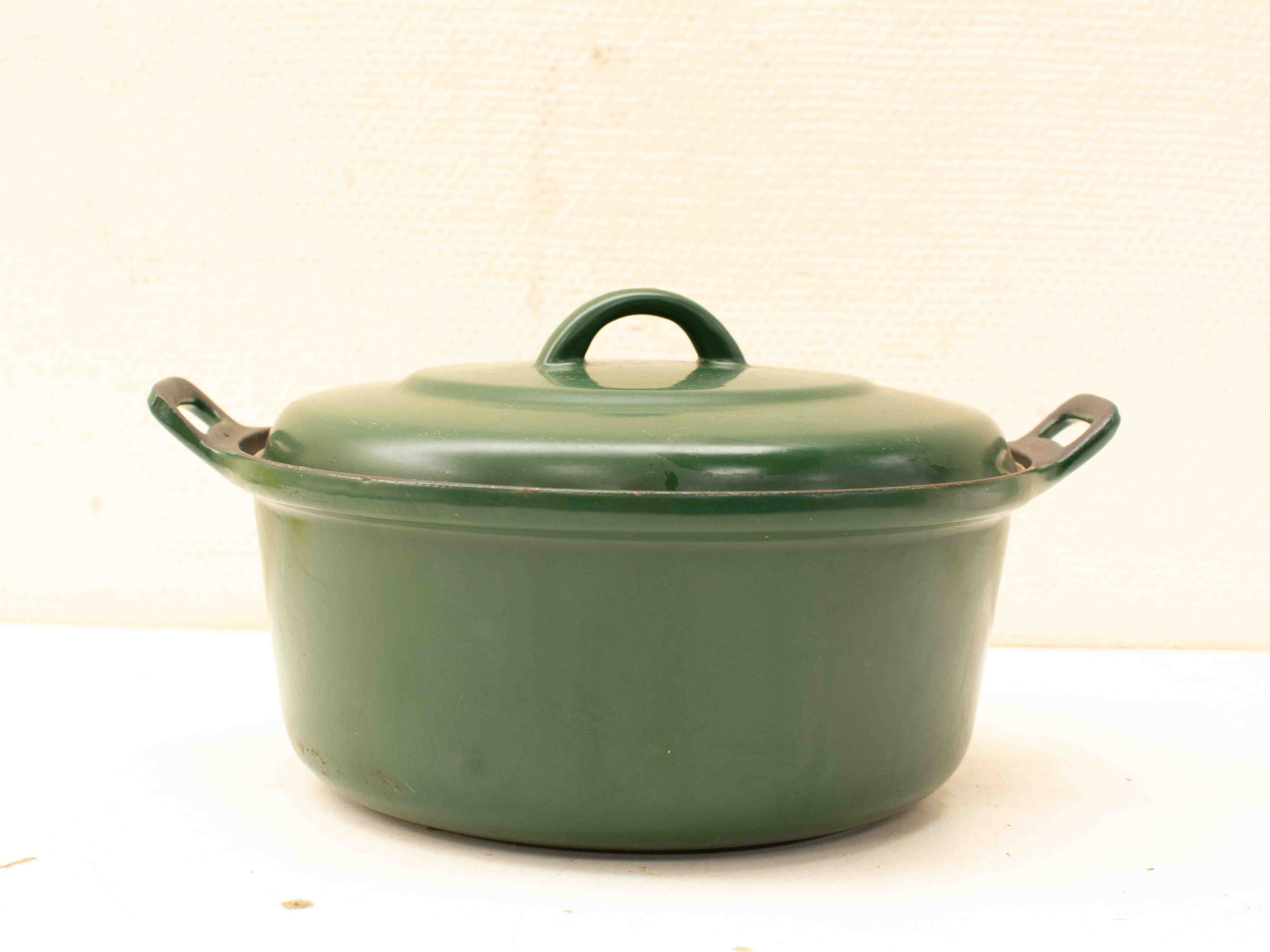 de pan heeft aan de binnenkant aanslag gemeten van oor tot oor 33 cm hoogte gemeten zonder deksel 12 cm