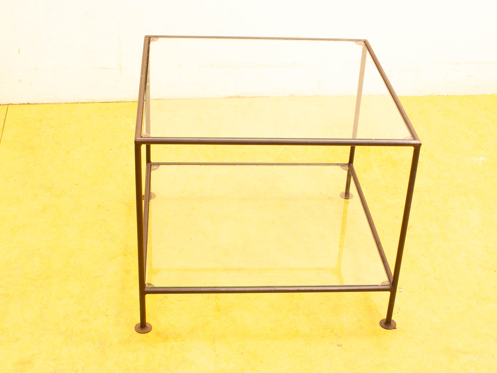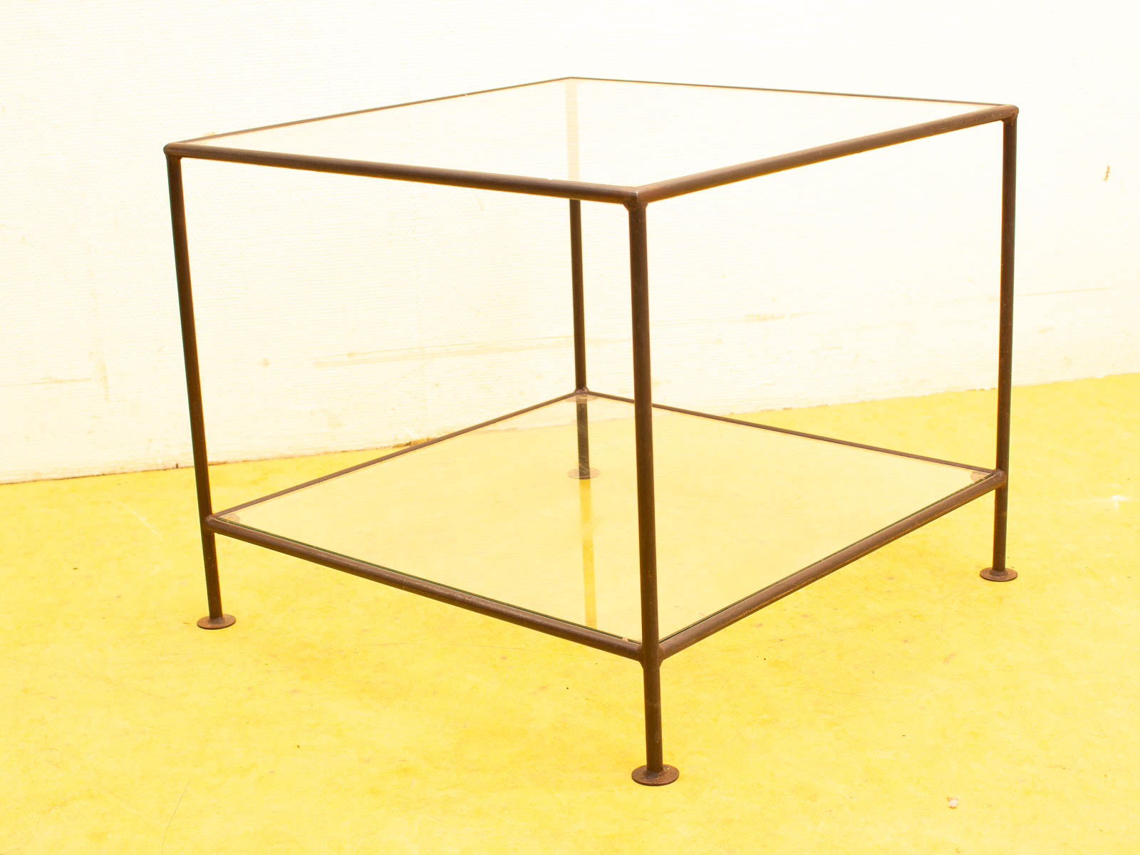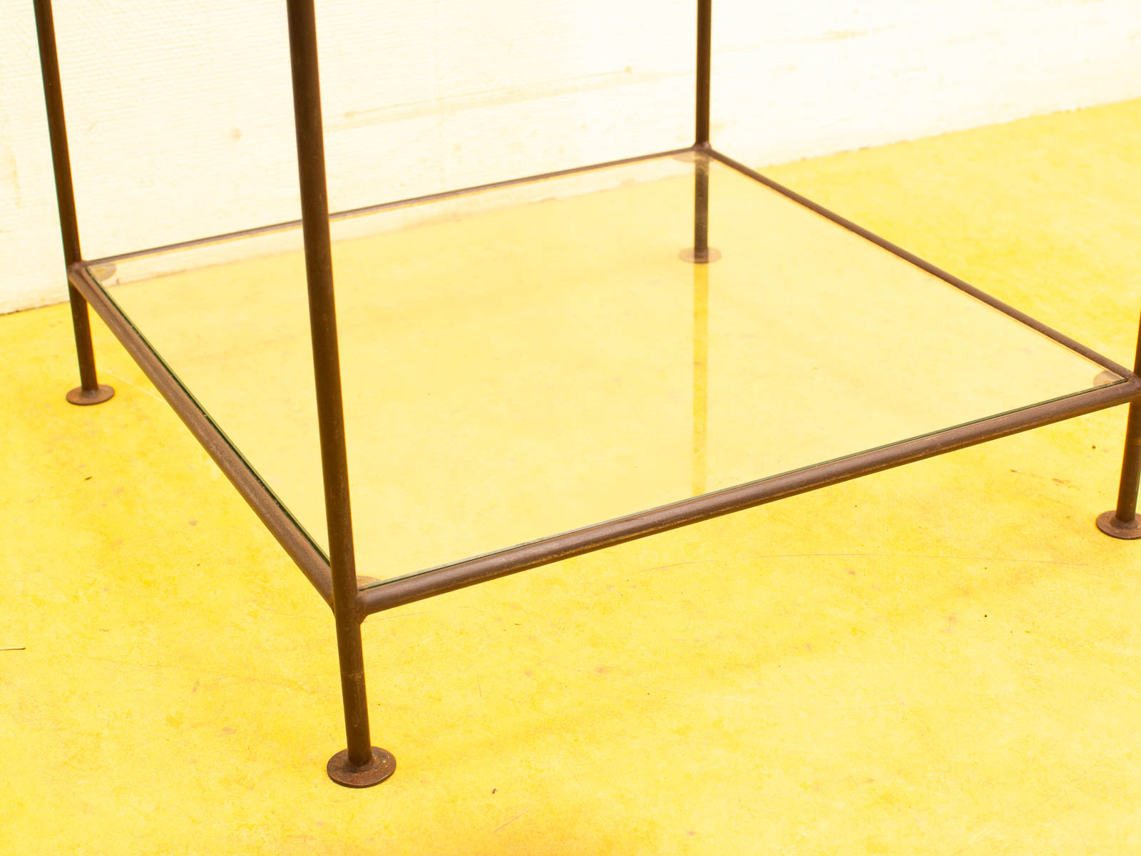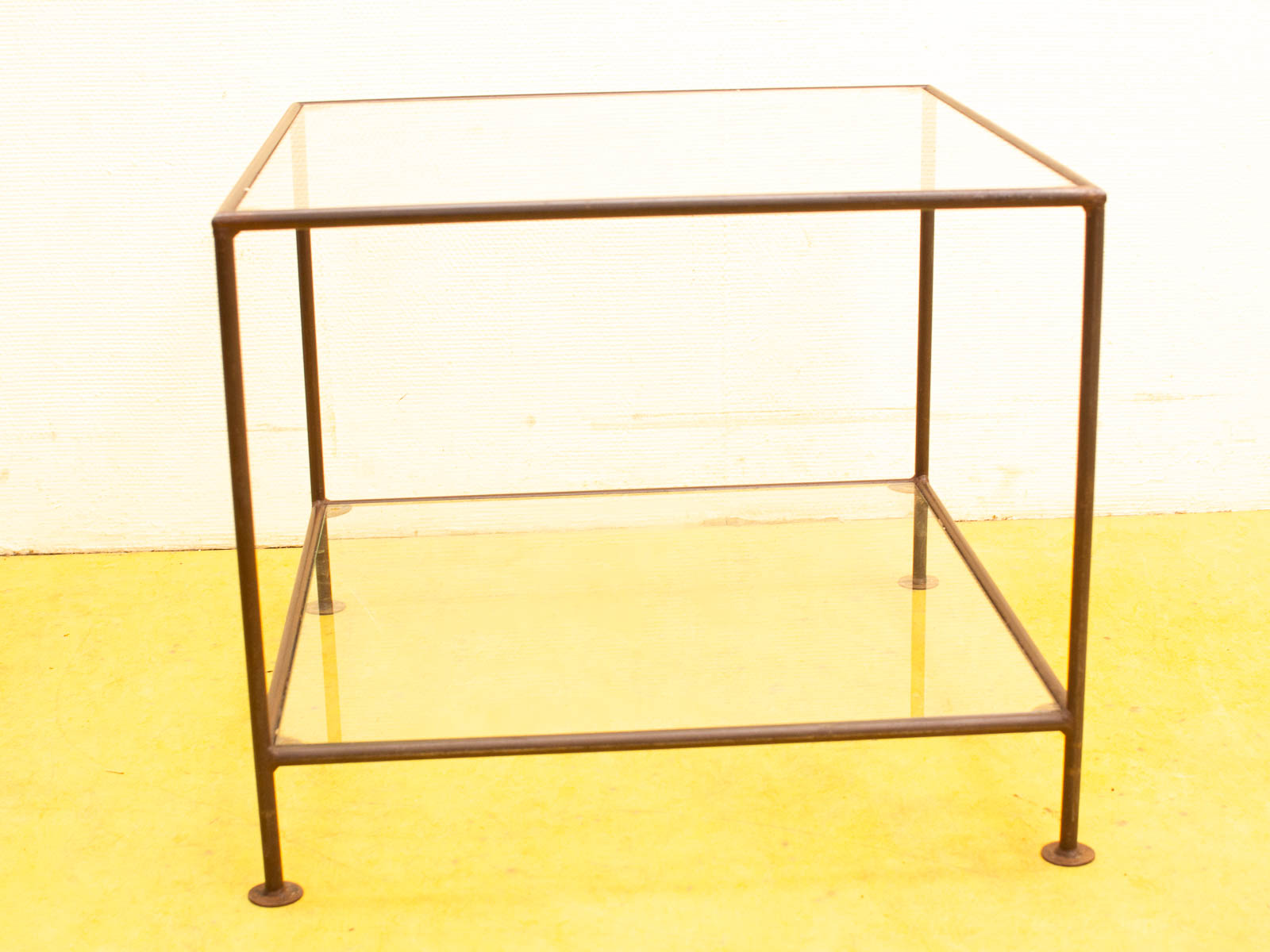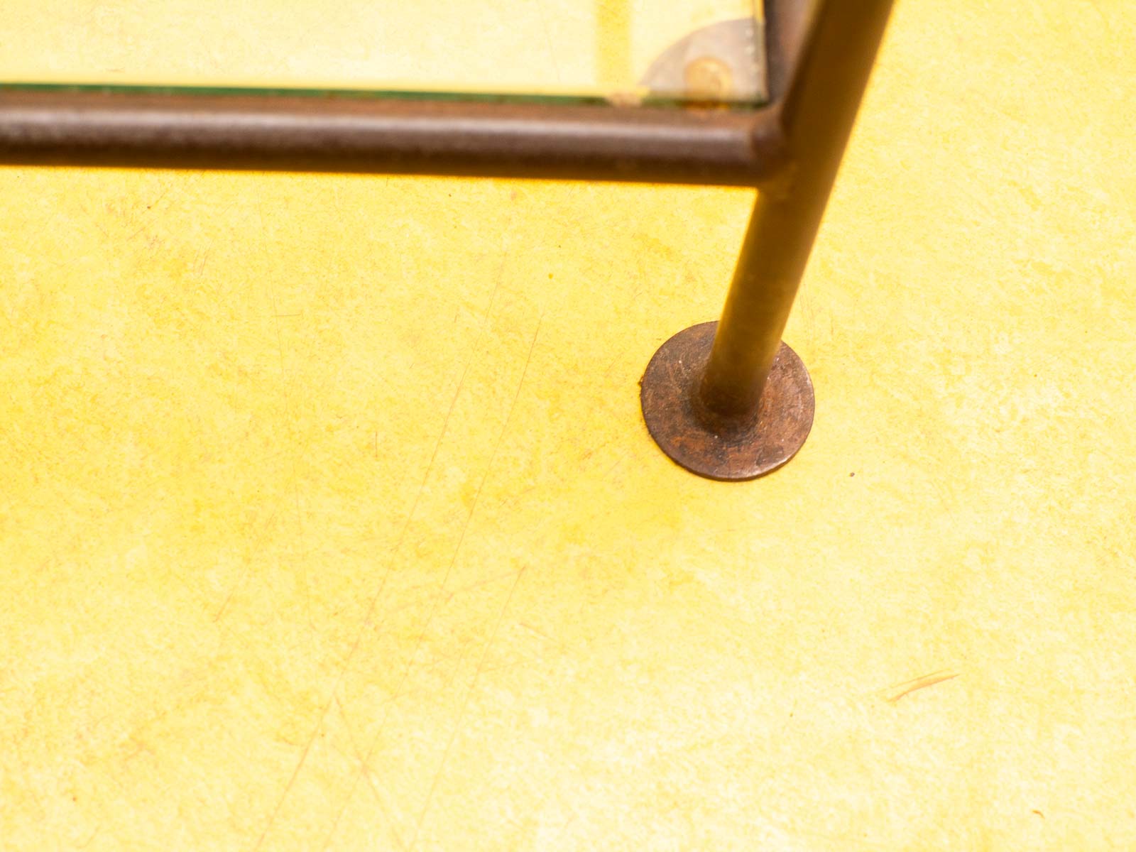 ruimte tussen de 2 glasplaten 37 cm de glasplaten hebben veel krassen de messing van de tafel heeft roest