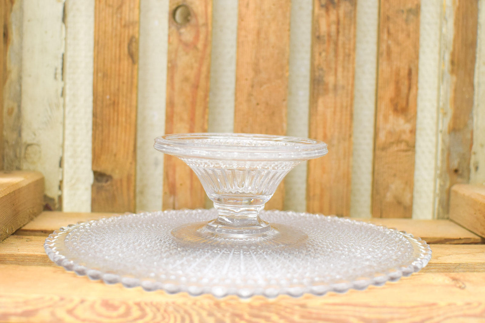 Dit glazen serveerplateau voor gebak is een handige toevoeging voor je keuken of tafelschikking. Met een diameter bovenkant van 24 cm biedt het voldoende oppervlak om gebak, cupcakes of andere lekkernijen op uit te stallen. Het plateau staat op een voet met verticale ribbelmotief en heeft een rand met kleine bolletjes die eraan vastzitten.