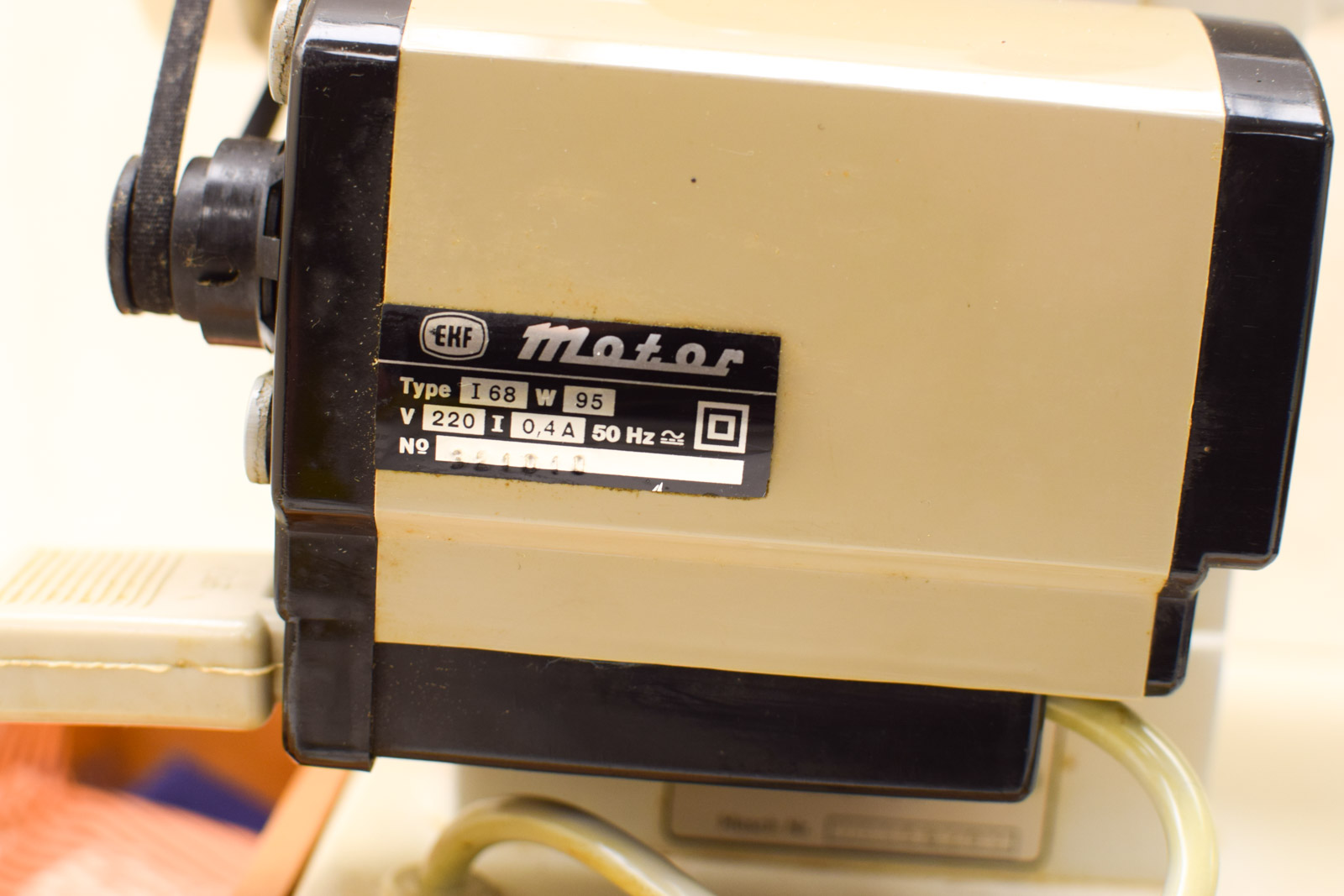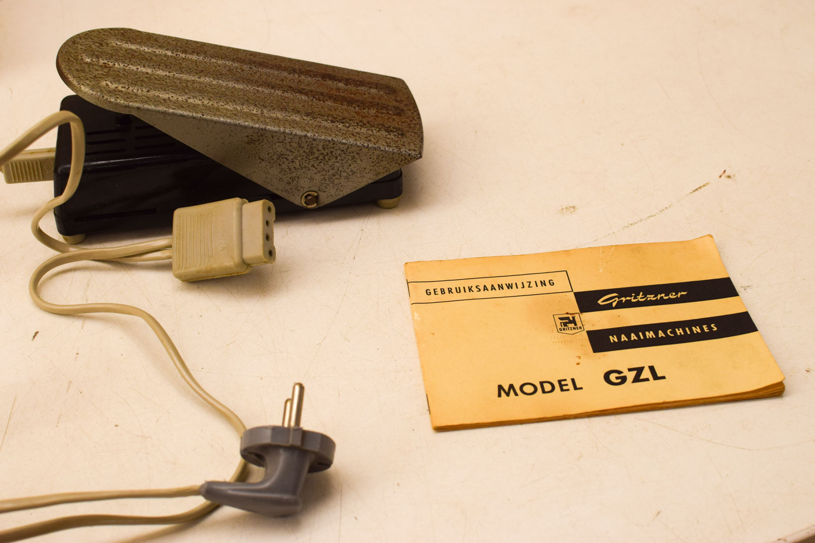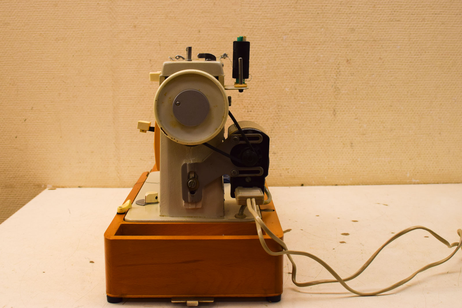 Gritzner naaimachine op houten koffer basis met inklapbare werktafel en elektrische motor, inclusief aansluitsnoer (accessoires volgens foto’s), niet getest en met normale gebruikssporen.