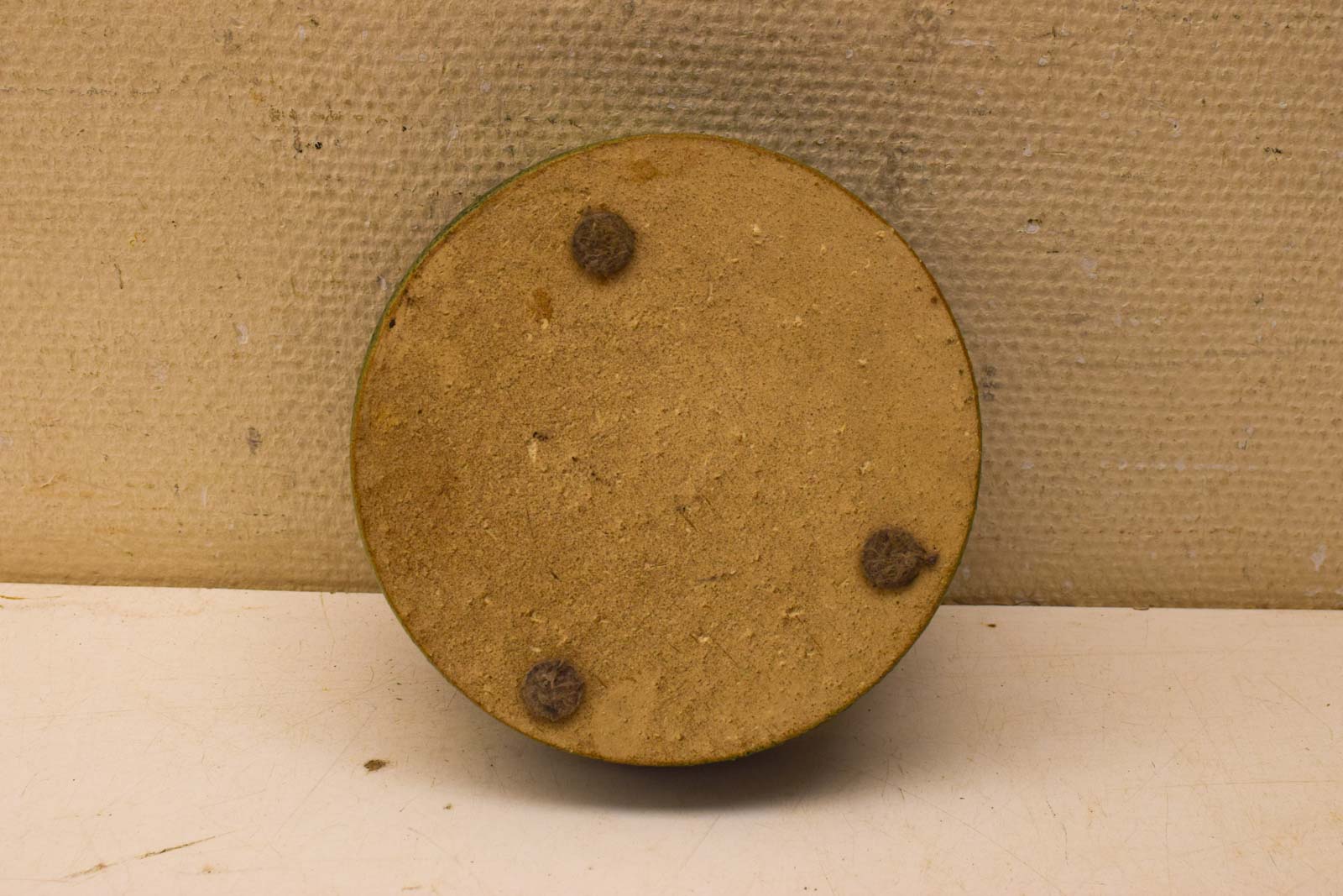 diameter bovenkant van de schaal 18,5 cm hoog 5 cm de schaal heeft vlekken krassen op de bodem de schaal is gebruikt maar is verder nog heel