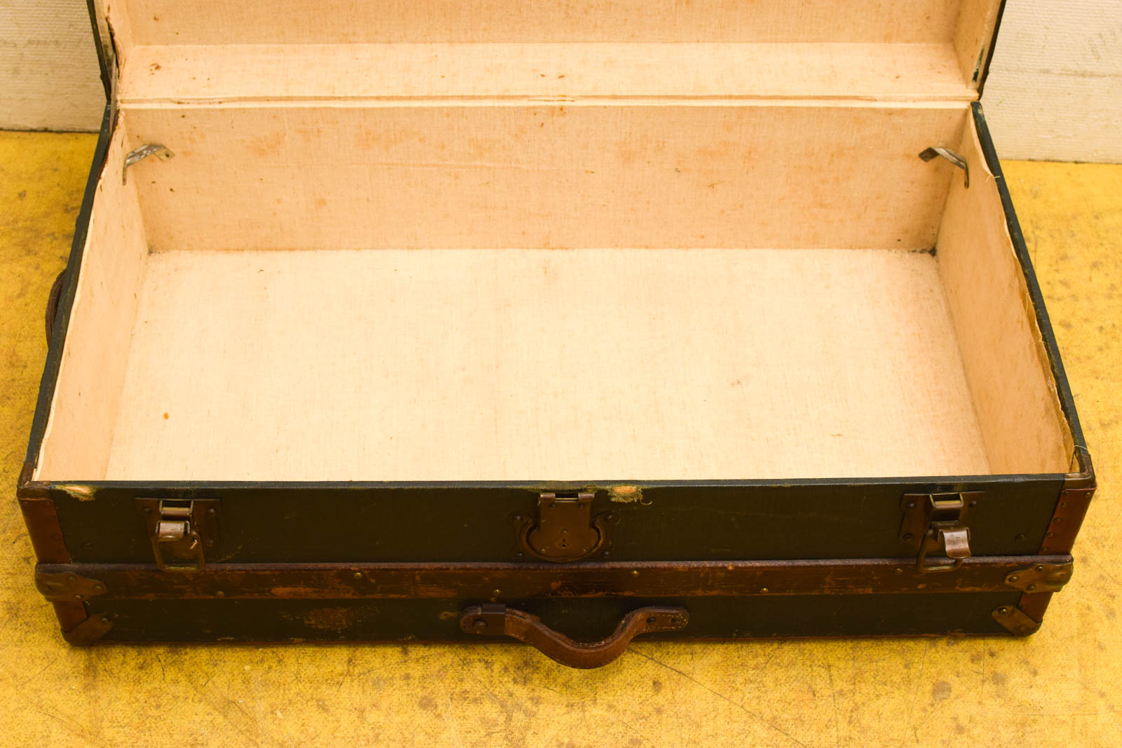 er is geen sleutel bij de koffer binnenmaat van de koffer breed 87 cm diepte 48 cm hoog 21 cm de koffer is gebruikt en heeft gebruikssporen en roest