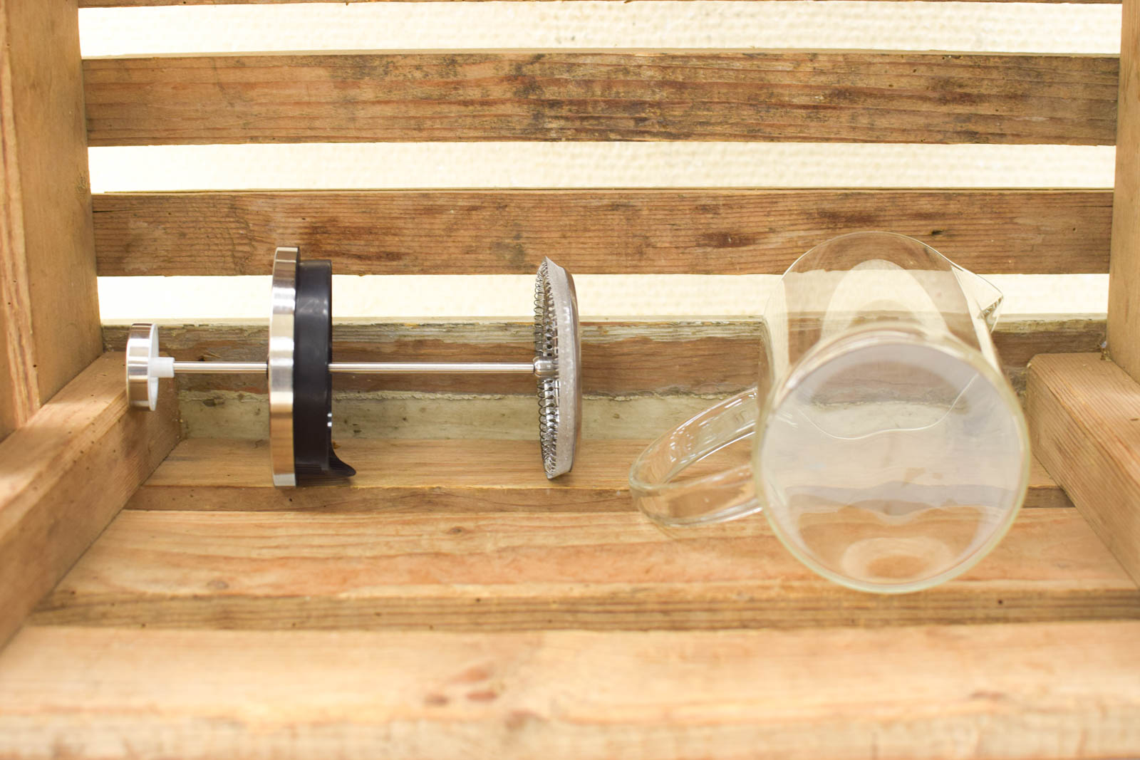 de kan is van glas de koffiepers ziet er nog redelijk uit gemeten zonder deksel hoog 15 cm gemeten van tuit met rand 9,5 cm