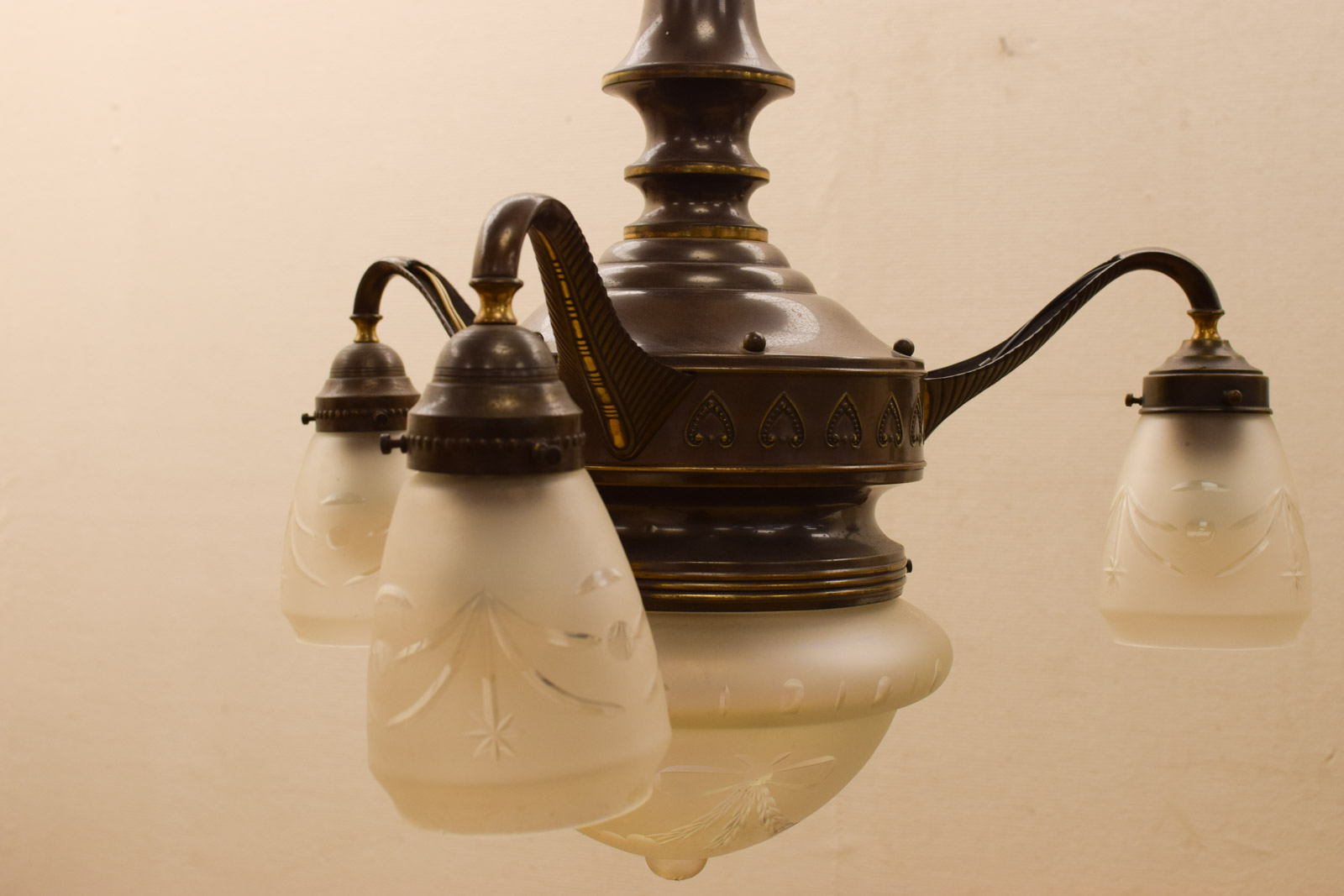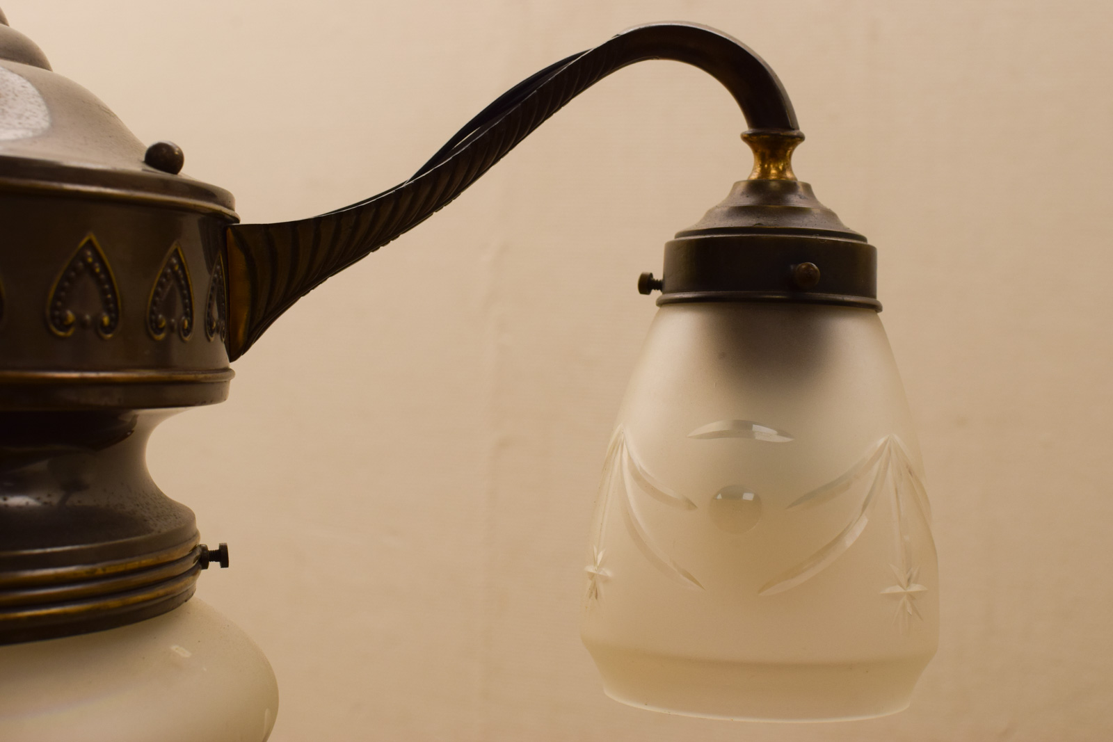 aan de onderkant is een glazen gesloten kapde hanglamp is gebruikt en heeft gebruikssporen alleen de lamp gemeten zonder de koord hoog 54 cm hoog