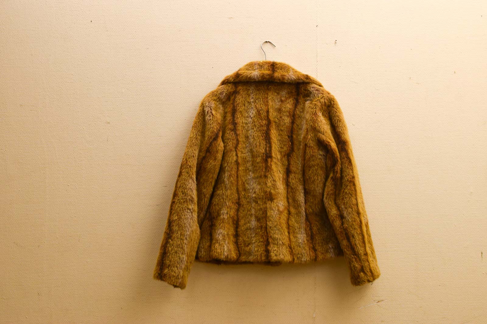 maat L het jastje is lang gemeten met kraag 70 cm kleur van de jas bruin geel